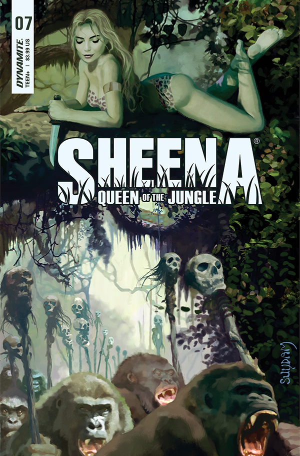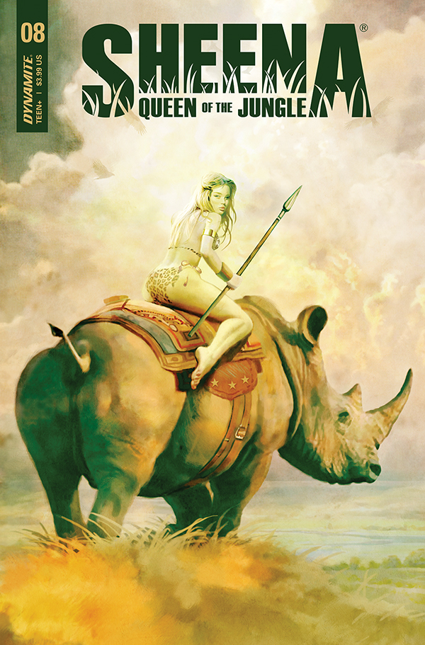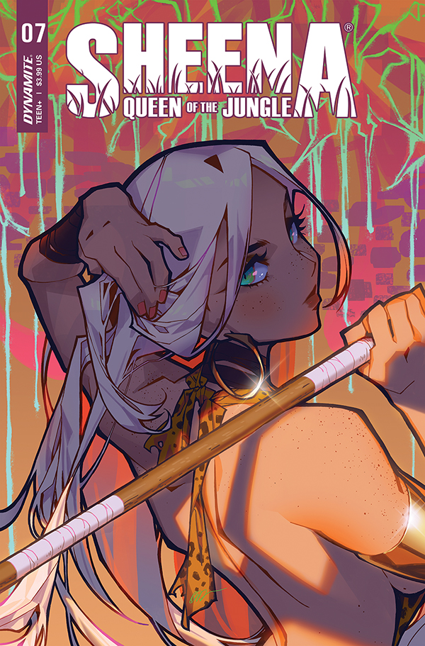 Dynamite Entertainment collects the second half of its 2021 Sheena Queen of the Jungle series this week with the release of Sheena Queen of the Jungle: Cenozoic, and you can check out the official preview of the graphic novel and cover gallery below…