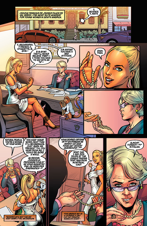 The adventures continue! After surviving the dome (spoiler alert), legendary writer Steven E. De Souza takes the reins as Sheena faces a new set of challenges: Higher education and a trip to the remnants of the Cenozoic Age? Collects Sheena, Queen of the Jungle #6-10, plus a complete cover gallery.