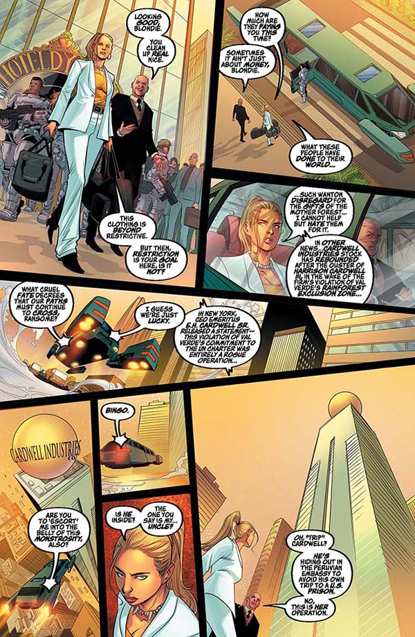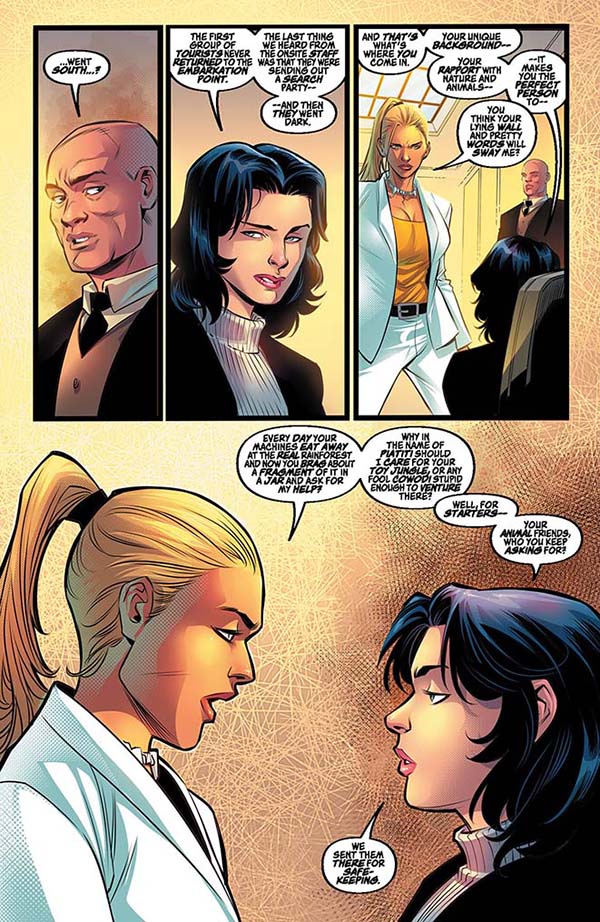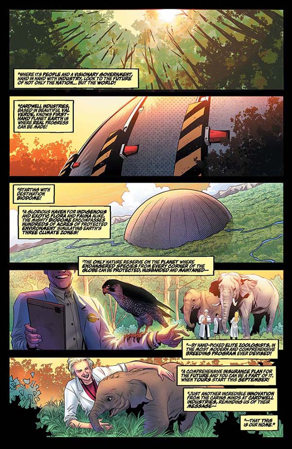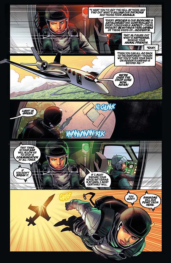 The Queen of the Jungle Returns! This thrilling adventure combines the classic elements of the legendary character along with a modern sensibility that will make it the perfect debut for fans new and old! In this collection, Sheena is recruited (that’s being kind, she’s kind of forced) to enter the “bio-dome” — an amazing synthesis and nature and machine, where something has gone terribly wrong. Outside the dome, she faces human trickery and deceit, inside the dome, she faces the deadly jungle and a fast, murdering mystery!