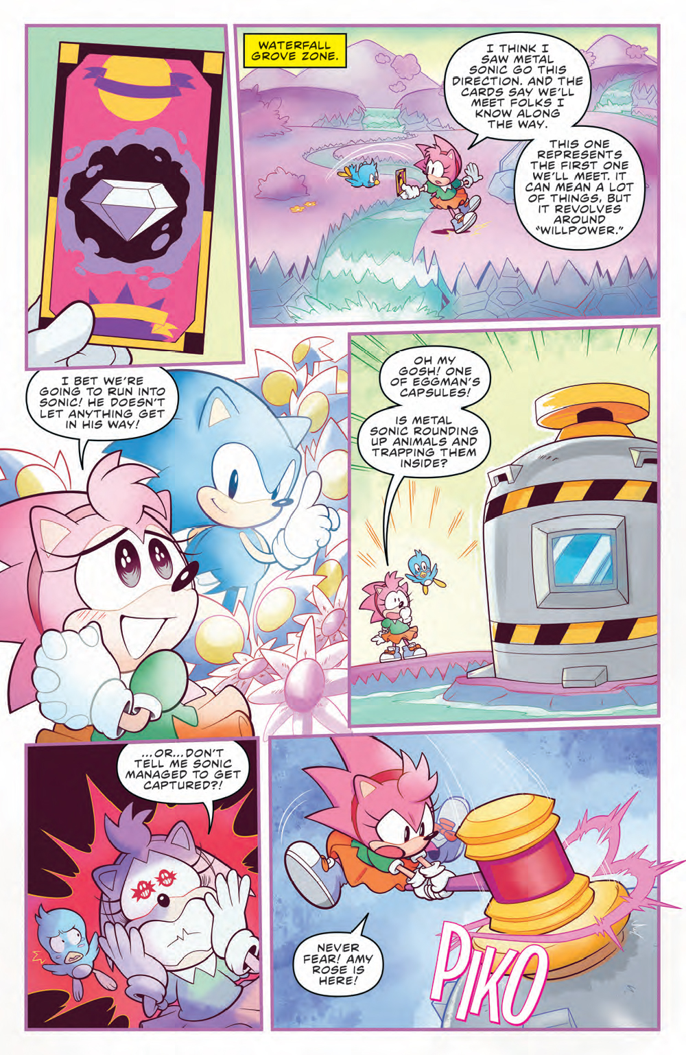Cool, sweet, and pink! All words that describe our absolute favorite hedgehog. That’s right, step aside, Sonic, and have no fear, Amy Rose is here! Ian Flynn, Aaron Hammerstrom, and Reggie Graham are back for another Classic Sonic special! And this time, Amy’s doing the saving! After Metal Sonic interupts her picnic, Amy uses her Fortune Cards as a guide to free her friends and stop Dr. Eggman. Can she save the day and still get back in time for tea?!