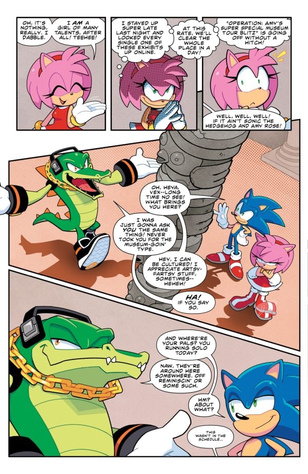 When an elusive master thief threatens to rob the Mythsonian Museum, which detectives are better on your side than Team Chaotix?! Can Vector, Espio, and Charmy get to the bottom of the museum’s true mystery and crack the case? Sure they can! If they could just get their story straight…