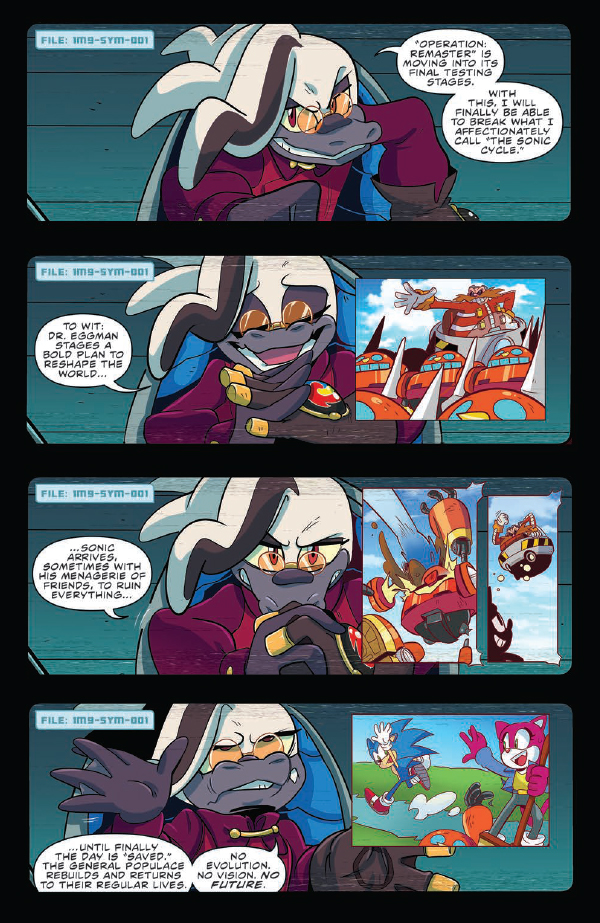 The ROAD TO #50 continues here! Enjoy a TEN-ISSUE long adventure leading up to the EPIC SHOWDOWN in milestone issue #50. A surge of impostors spells trouble for Sonic the Hedgehog, Tails, and even Eggman! Dr. Starline is pulling every tool from his kit as he creates his fastest and smartest invention.