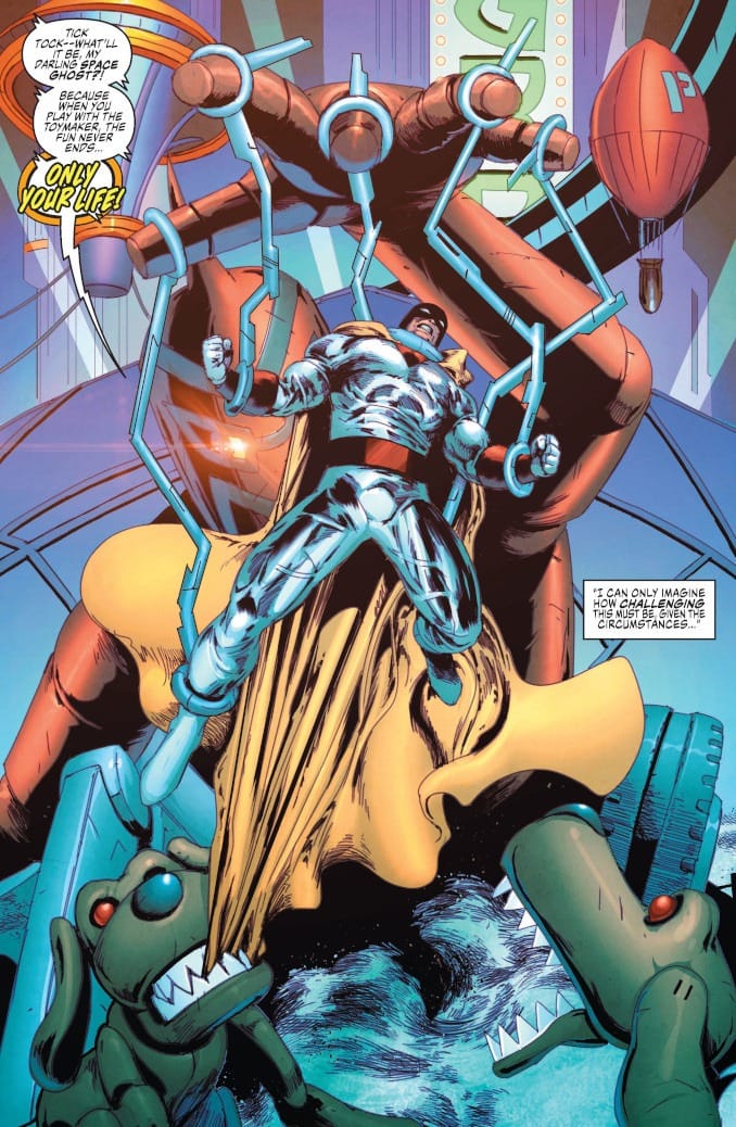 As Space Ghost and Blip fight to defuse a hostage situation on an amusement park planet that’s been hijacked by the villainous Toymaker, Jan and Jace are confronted by a mysterious figure from their past — a meeting that will shake the Ghost Planet’s team to the core!
