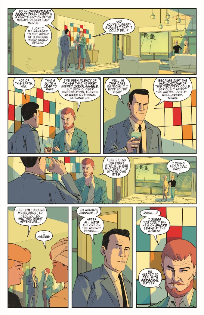 So what happens when the Defender of the Spaceways and the world’s most famous boy adventurer cross paths? The greatest entertainment event of the 21st century, that’s what — all effortlessly executed by Jonny Quest’s acclaimed creative team of author Joe Casey and illustrator Sebastián Píriz, with high-gain covers expertly engineered by Mark Spears, Joshua Middleton, Derek Chew, Ben Oliver, and Chad Hardin.