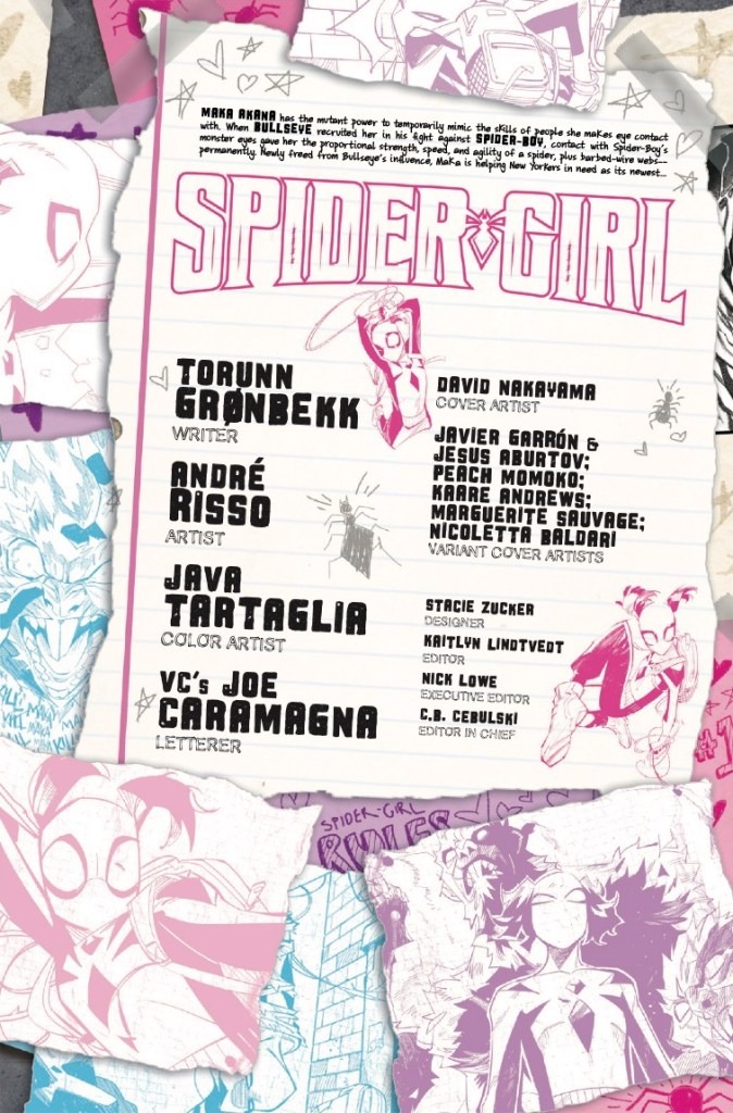 Spinning out of the pages of Spider-Boy comes the sensational Spider-Girl! After Bullseye’s betrayal, Spider-Girl is trying her hand at being a hero. But when a clash with Vermin reveals that a major Spider-nemesis is tracking her, Spider-Girl will have to figure out what this villain wants — and which of their allies will try to kill her next.