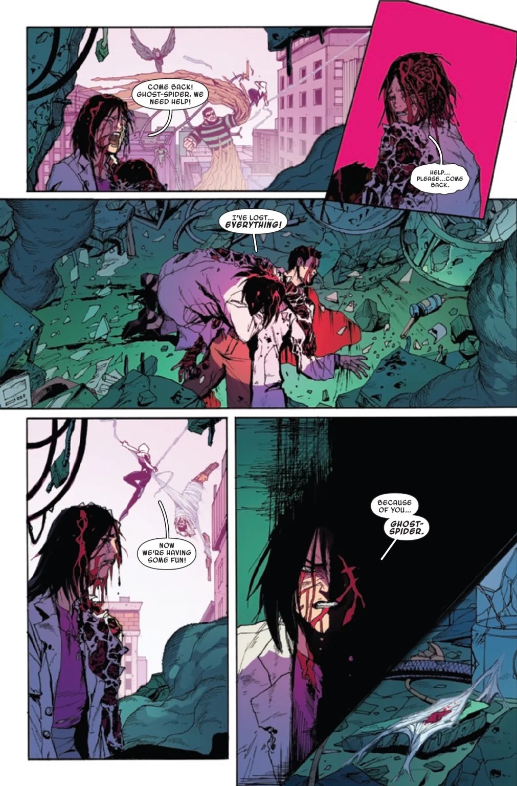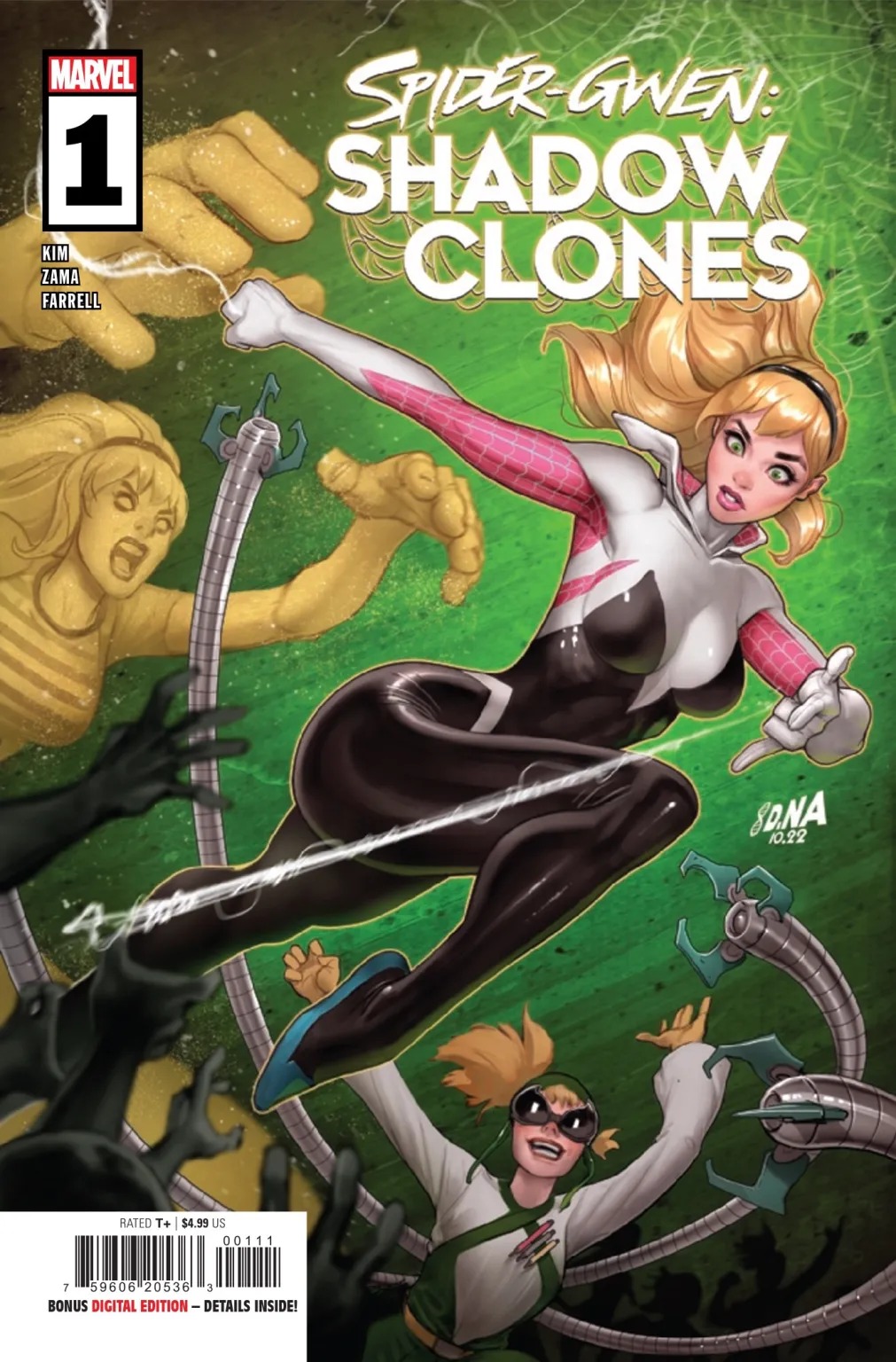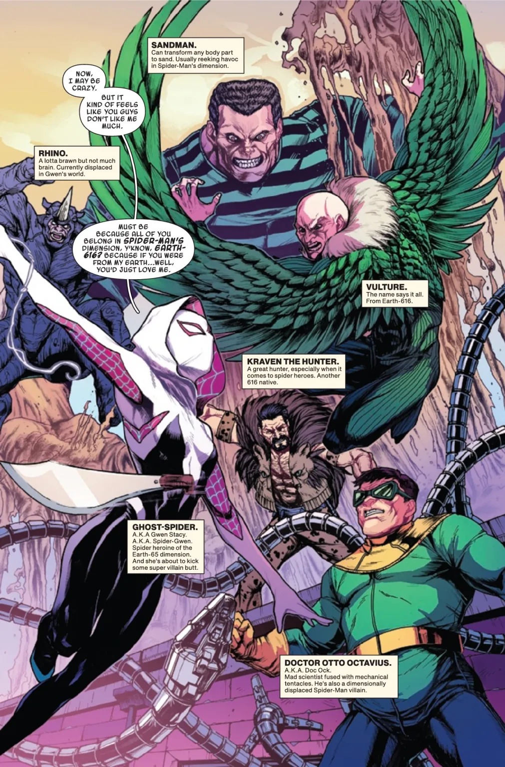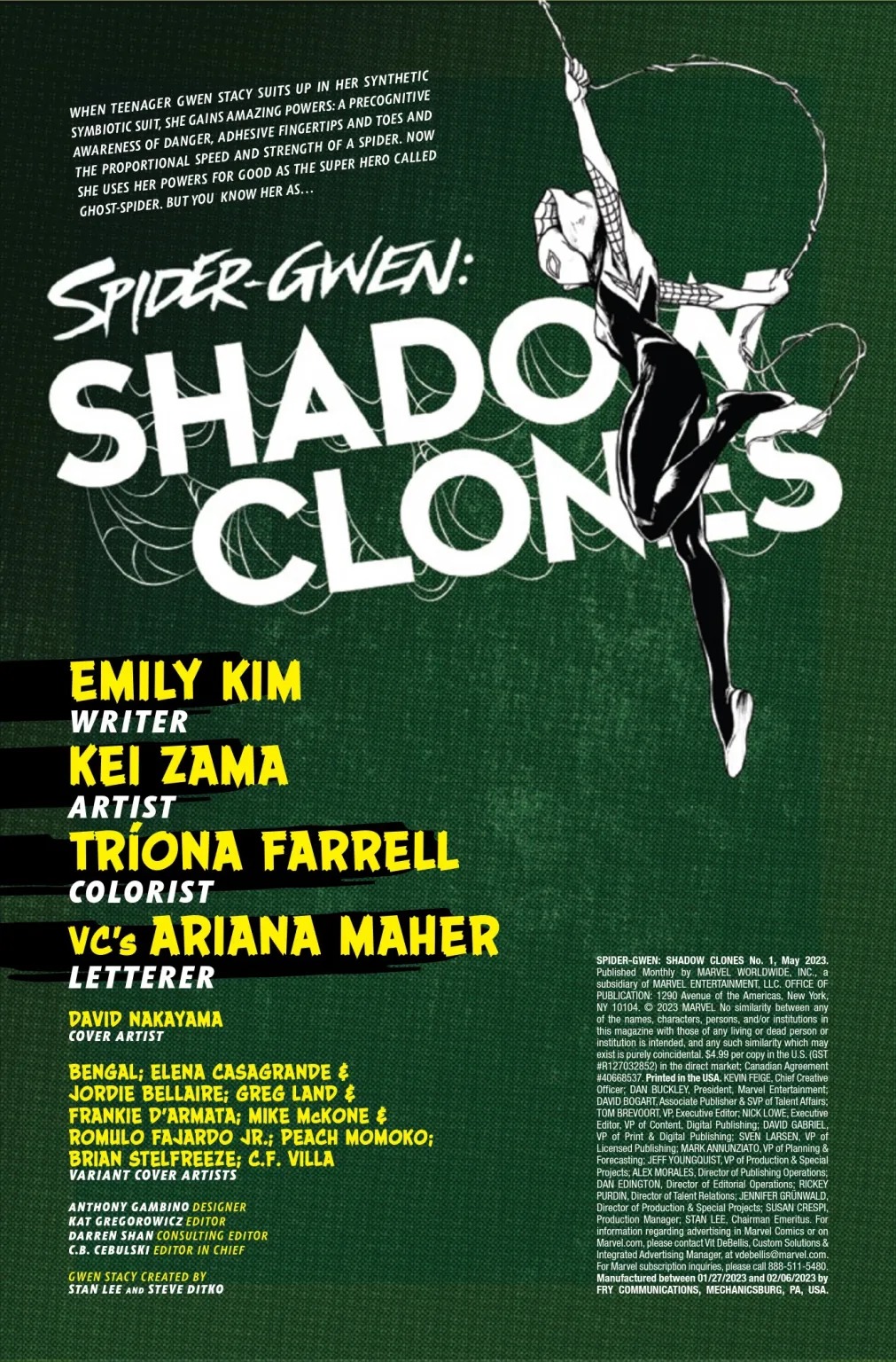 GHOST-SPIDER’S LIFE TURNS UPSIDE DOWN! Ghost-Spider comes face-to-face with some of the deadliest Spider-Man villains, including Doc Ock, Sandman, Vulture and more! But wait… Why do they all look like…Gwen?! Writer EMILY KIM (SILK) and artist KEI ZAMA (AVENGERS MECH STRIKE) take Gwen down a twisted path as she must stop whoever is cloning her into infamous Marvel villains!