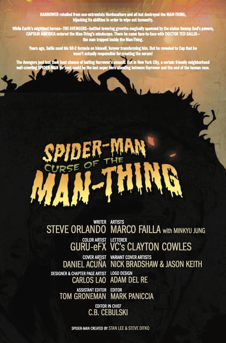 Marvel’s Man-Thing 50th anniversary celebrations continue this Wednesday with Spider-Man: Curse of the Man-Thing #1, and we have the official preview for you here…