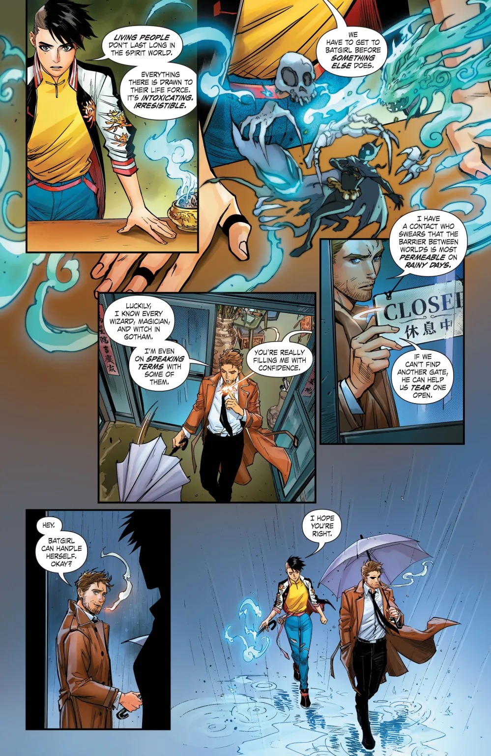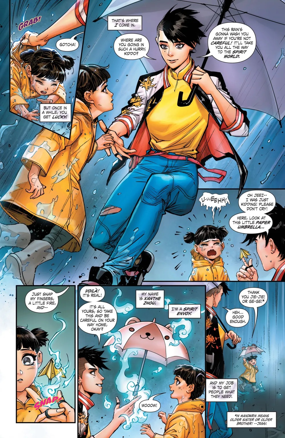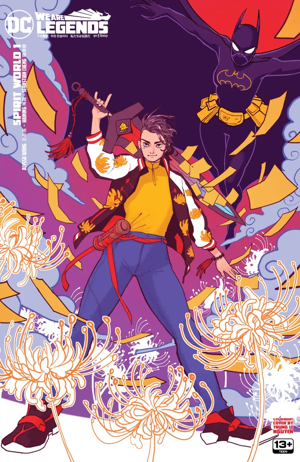 From the pages of Lazarus Planet: Dark Fate, a new Chinese hero emerges who’s able to travel to and from the Spirit World, the realm of the dead, and that of the living. Their name is Xanthe, and their superpower is being able to burn items folded from joss paper and immediately turn them into real objects, based on the East Asian practice of burning joss paper at graveyards in order to send resources to ancestors in the Spirit World…except Xanthe can retrieve those items in the world of the living! Their weapon of choice is a large broadsword (because who doesn’t love a big sword when you can choose to use a big sword?!). Xanthe is a master of the dark arts who’s here to give Constantine a run for his money…literally. When Constantine shows up saying Xanthe scammed him into buying something, he finds them and Batgirl Cass Cain fighting an abnormal influx of jiangshi (Chinese hopping vampires) and joins in to help. But when a portal opens up that drags Batgirl into the Spirit World, it’s up to Xanthe and Constantine to travel to the land of the spirits to rescue her! Who knows what other spirits we’ll find in the Spirit World—like that skateboarding boy wearing hanfu with some headphones and a gaping hole in his chest?!
