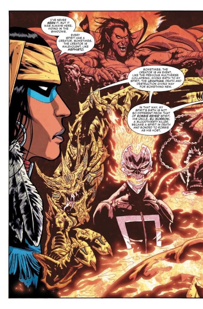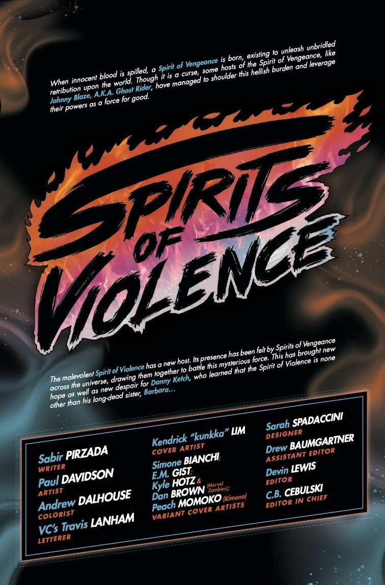 Johnny Blaze, Danny Ketch, Robbie Reyes, Kushala, Fantasma, Hellverine and more! Ghost Riders unite! When a strange group of new villains set their sinister plan in motion, Ghost Riders past, present and future must combine forces to save the world. But just who is the Spirit of Violence, and what horrors do they bring from Johnny Blaze’s and Danny Ketch’s pasts? Forget everything you thought you knew about Ghost Rider! The most climactic ride in history starts here!