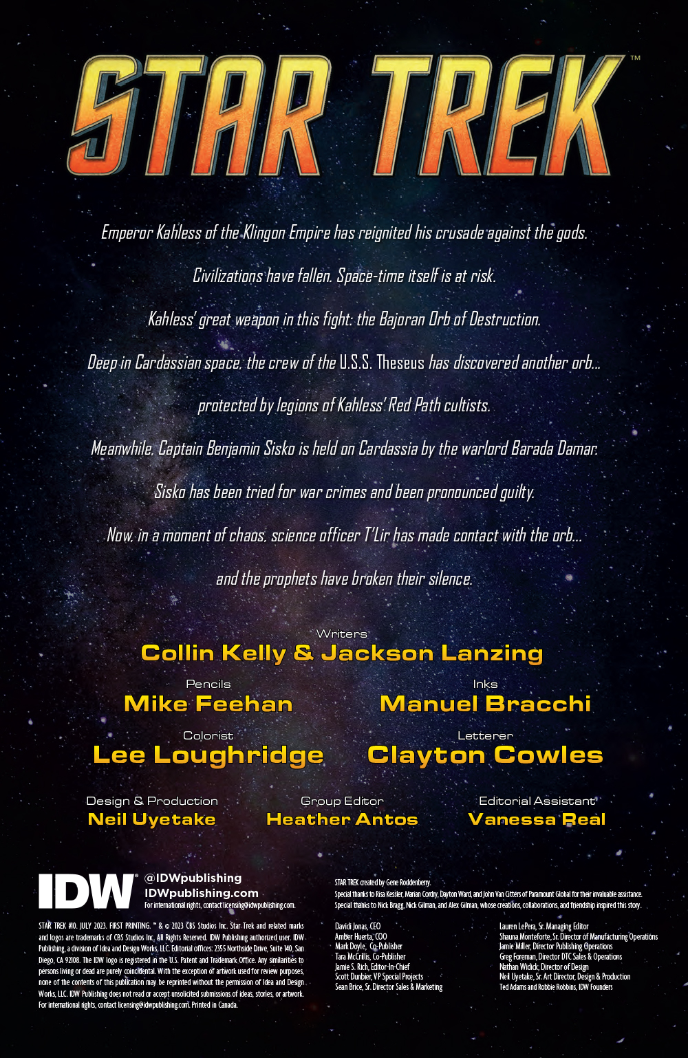 Lieutenant Shaxs receives visions from the Bajoran Prophets. He sees his past and his future, and he sees the trial of Benjamin Sisko. The crew of the Theseus must fight their way back together after being separated across Cardassian space before their Captain’s fate is set in stone and Kahless can carry out his promise of more bloodshed.