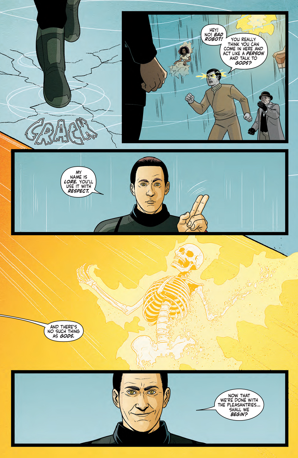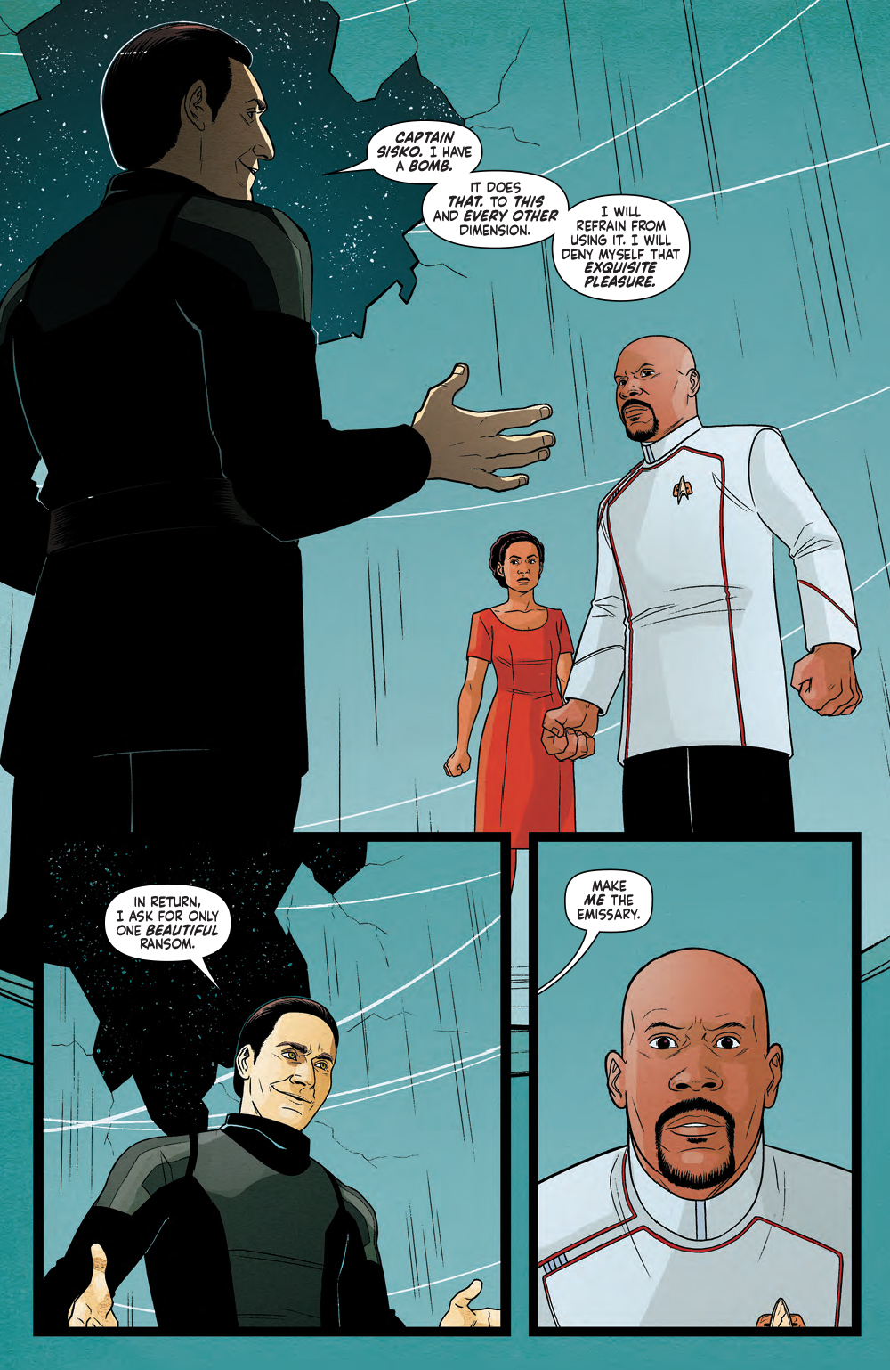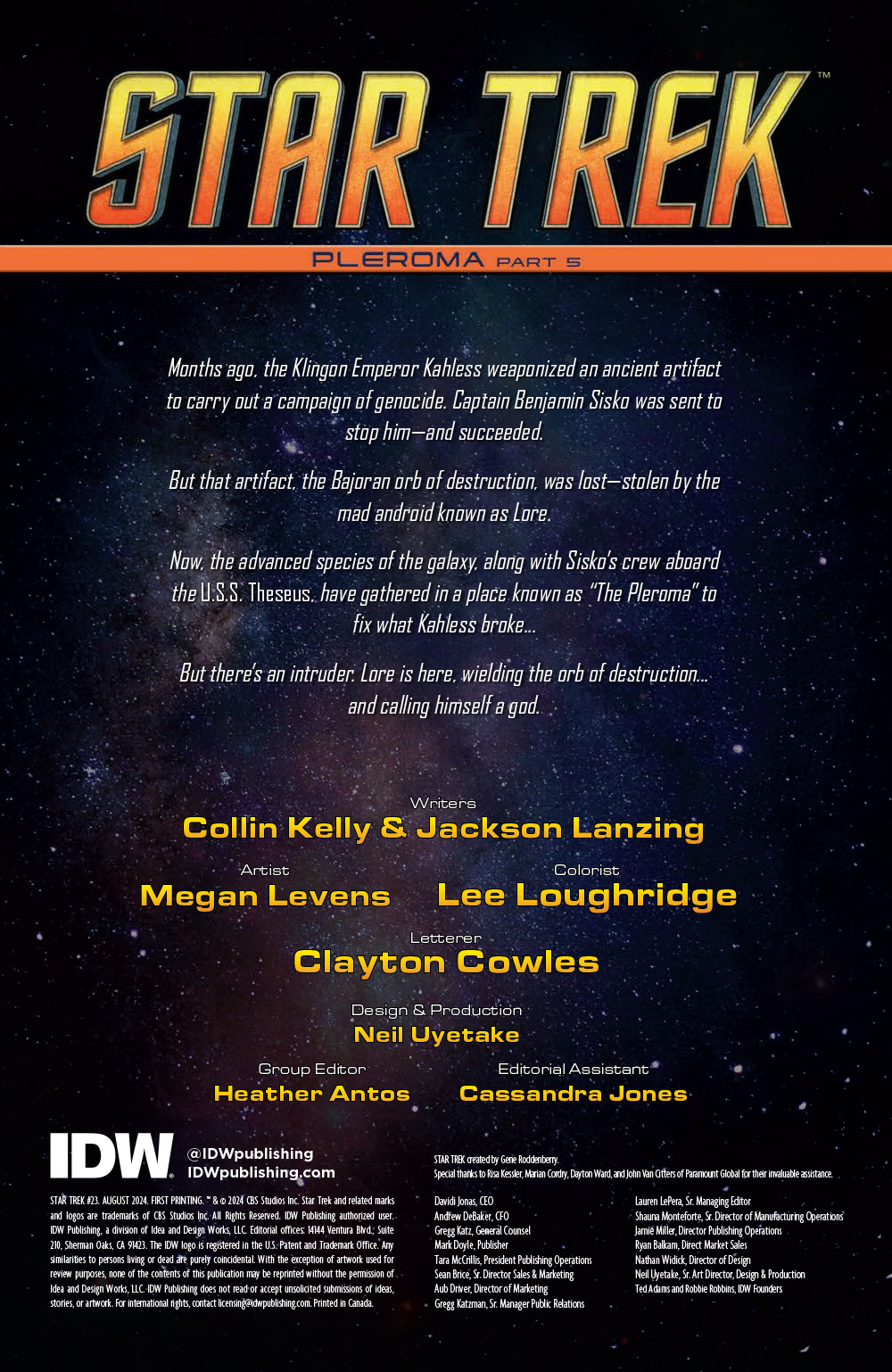 After defying the laws of physics to reach the Pleroma, Captain Sisko and the Theseus crew find themselves unwelcome. The gods want them home and warn that everyone will die if they don’t leave, but they’re too late and their worst fears just might come true. The new godkiller is on their doorsteps… and it’s none other than Lore!
