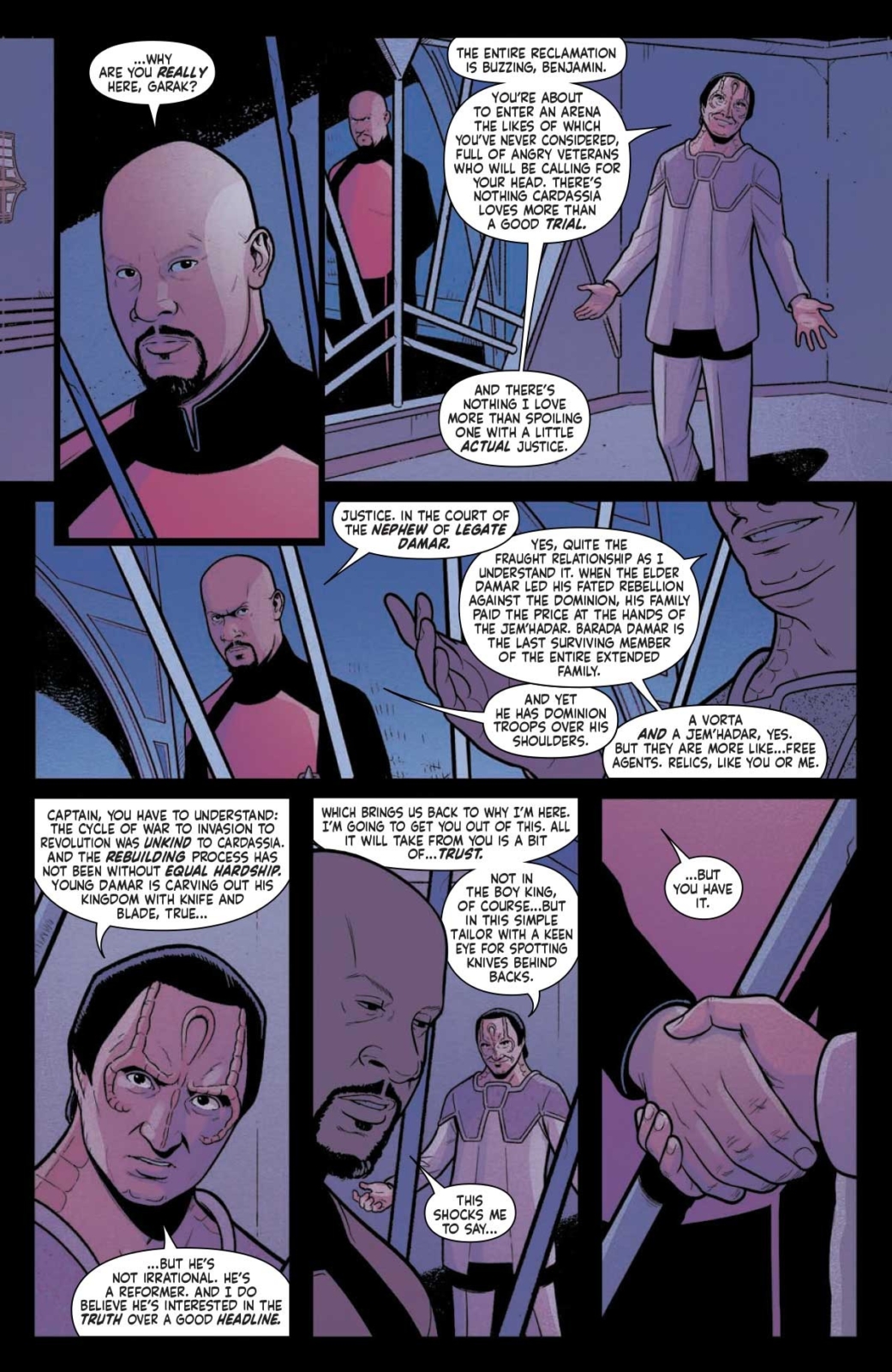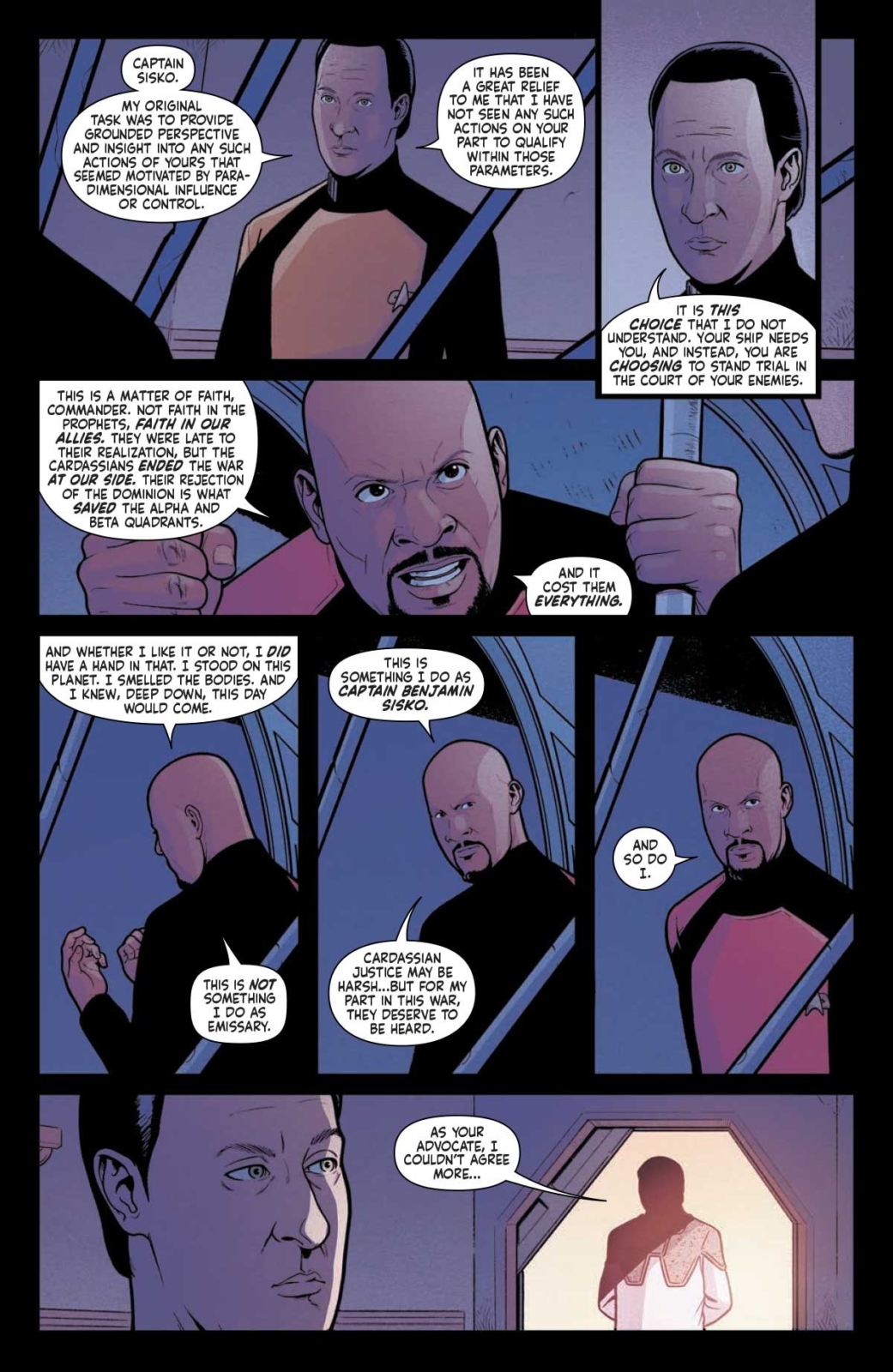 “The newly established Obsidian Council of Cardassia Prime has spoken: The time has come for Benjamin Sisko to stand trial for the atrocities he ordered and for his contributions to war crimes by the Federation during the Dominion War.”