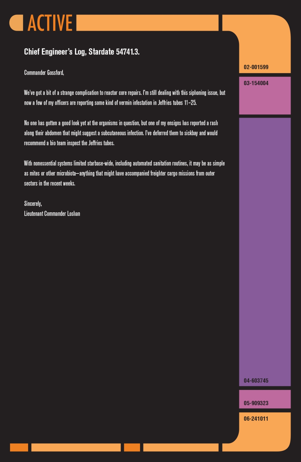 Resistance is futile! Cornered by their own parasitically possessed crewmate, Worf and the Defiant crew scramble for a way to safely save her before it’s too late. But the hive is eager to grow its numbers, seeking total dominance over a galactic level of organic species after already claiming Starbase 99’s crew as hosts. Trapped and unable to call Starfleet for assistance, Hugh suggests taking drastic measures-assimilate B’Elanna to Borg tech!