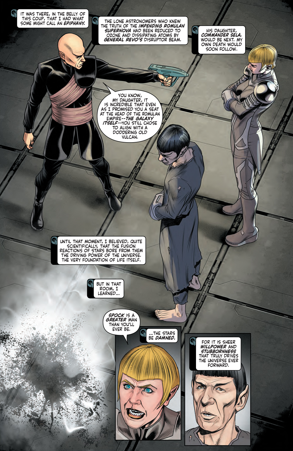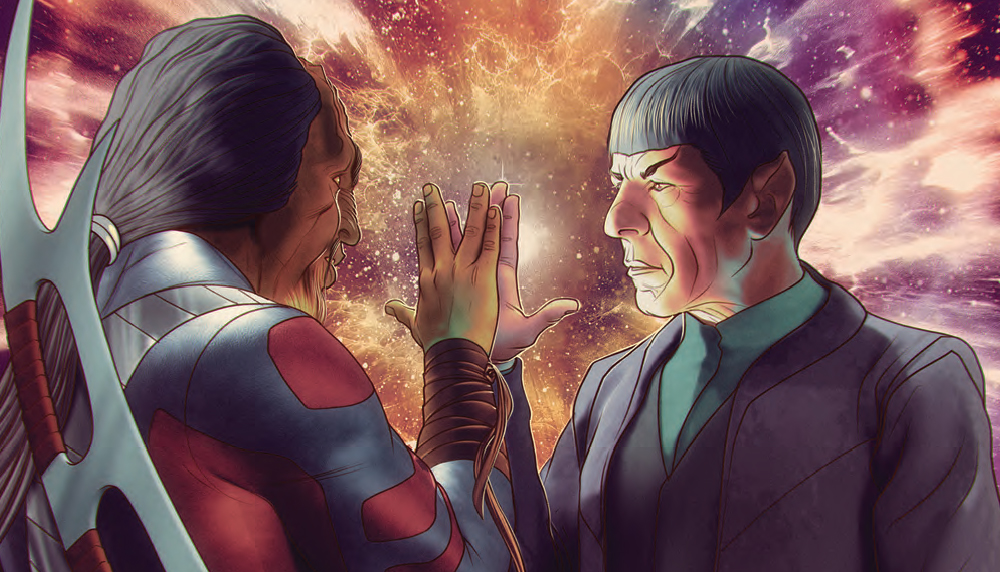 Spock and Sela are trapped in the belly of the Romulan warbird Taredrix and General Revo’s coup. The three of them are the only living souls who know of the impending Romulan supernova. With Revo offering Sela the choice between death or a seat at the head of the empire itself, Spock will learn the answer to the question of what drives the universe ever forward: sheer willpower or blood?Meanwhile, it’s up to Worf, B’Elanna, and Ro to save the pastoral planet Antara from the hostile Romulans seeking to take it as their own.