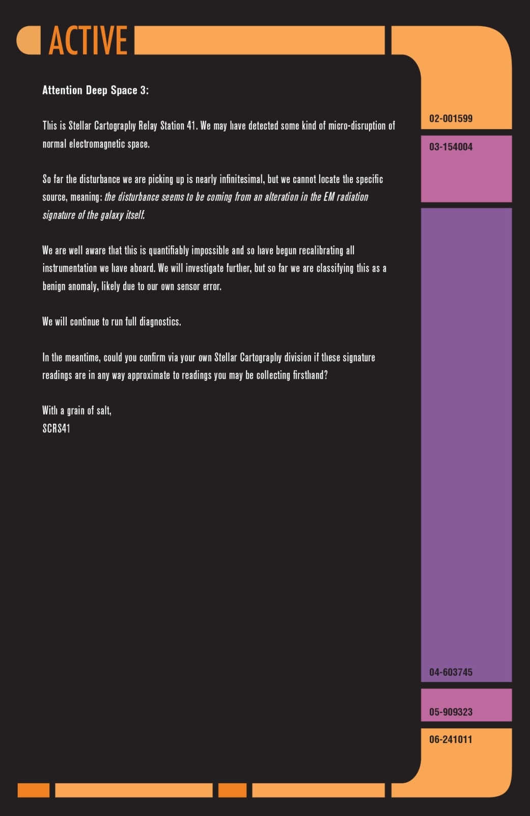 B’Elanna Torres is in the captain’s chair of the Defiant, and she has a choice to make: return home and report for duty as the mother Miral needs or continue saving the universe with her crew. With her disavowed status from Starfleet command and all that she’s been through-from bounty hunting to parasite infestations-B’Elanna isn’t sure she’s strong enough for either task. Luckily, O’Brien proposes a detour adventure to dismantle minefields in the Alpha Quadrant, and B’Elanna jumps at the chance to forestall a final decision… for now.