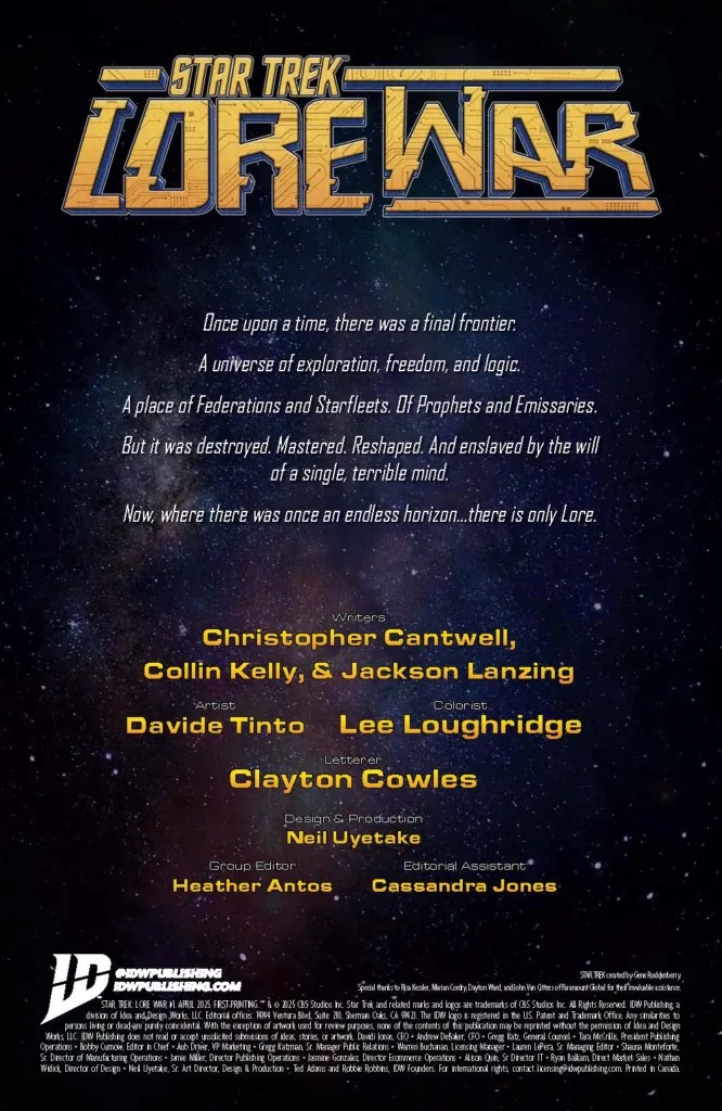 Star Trek: Lore War #1 is out on Wednesday, April 2nd 2025.