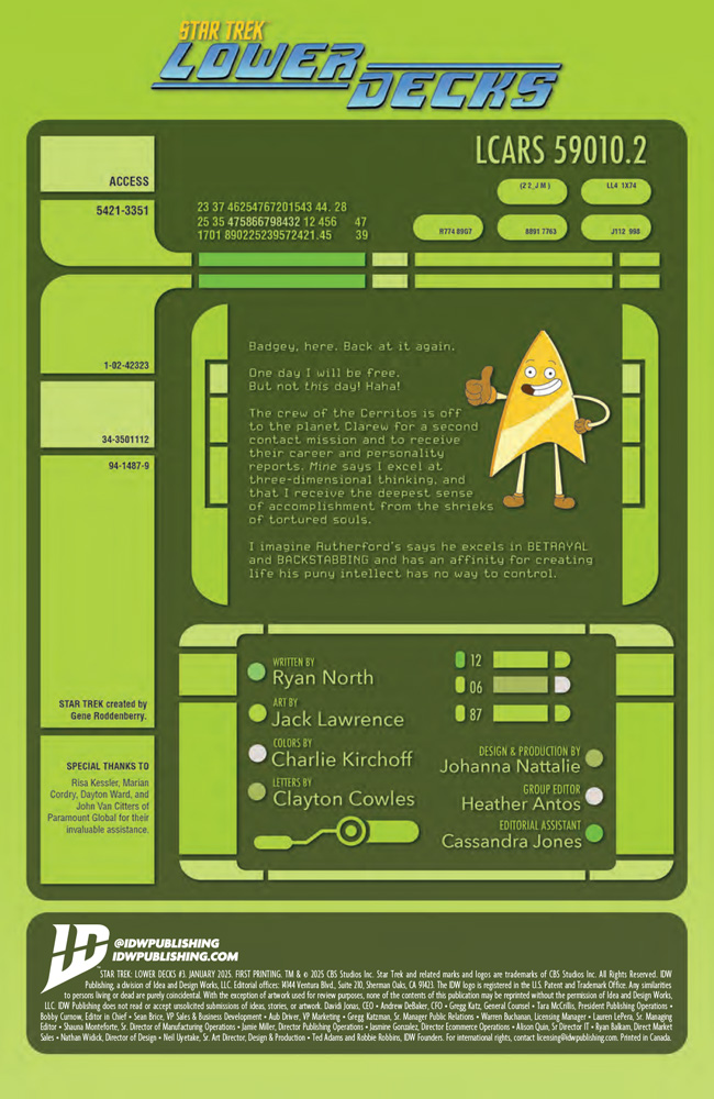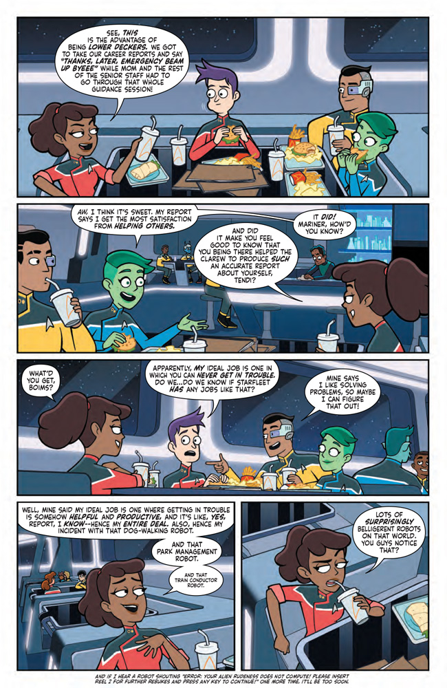 IDW Publishing releases Star Trek: Lower Decks #3 this coming Wednesday, and we have the official preview of the issue for you below; check it out…