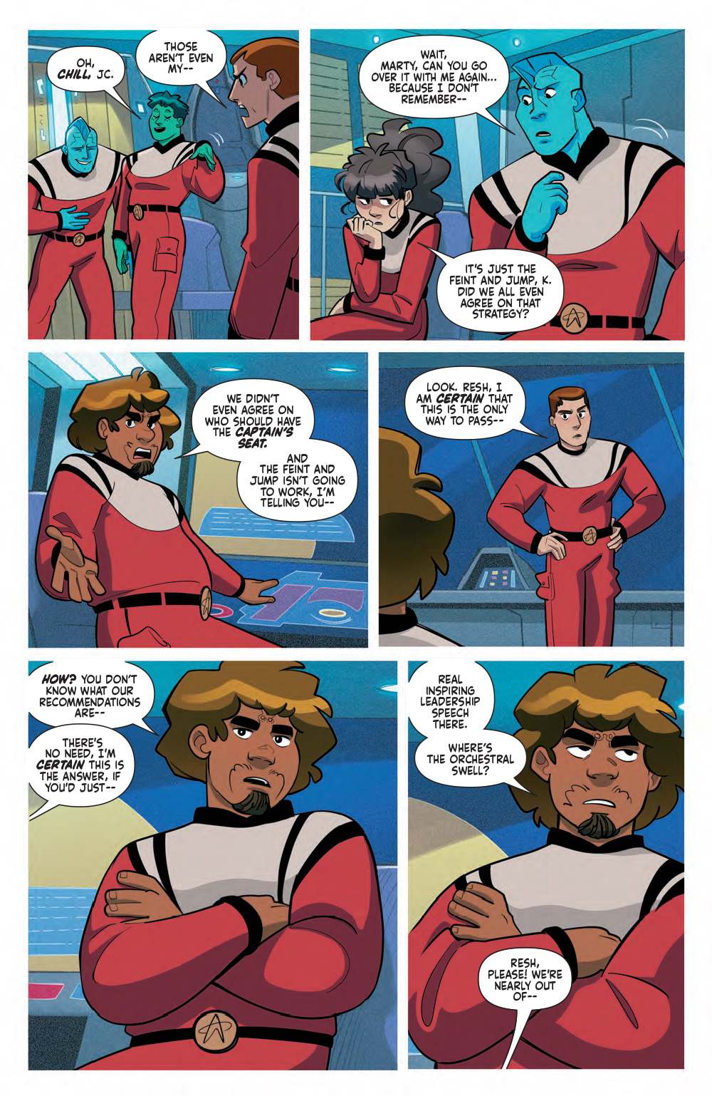 It’s practice day for the most important test of Cadet Picard’s Starfleet Academy career thus far! His first test in actual space… and he is not ready. He may as well be yelling into a black hole after being put into a group with all his least favorite colleagues… and Marty, the girl he kind of, sort of likes. No one’s listening to his commands, and he doesn’t know how on Earth he’s supposed to see eye-to-eye with Resh, his bully and competition for top of the class! Picard’s course is set for failure, and if he can’t figure out a way to change things soon… there goes his future.