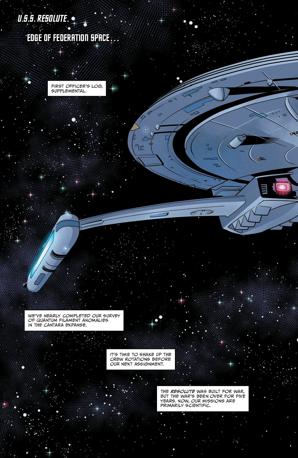 On a windswept planet bordering the notoriously hostile Talarian Republic, a scientist on the cusp of developing technology that will revolutionise warp goes missing. The crew of the U.S.S. Resolute is tasked with an urgent stealth mission to recover Dr. Leah Brahms and keep her research out of enemy hands.