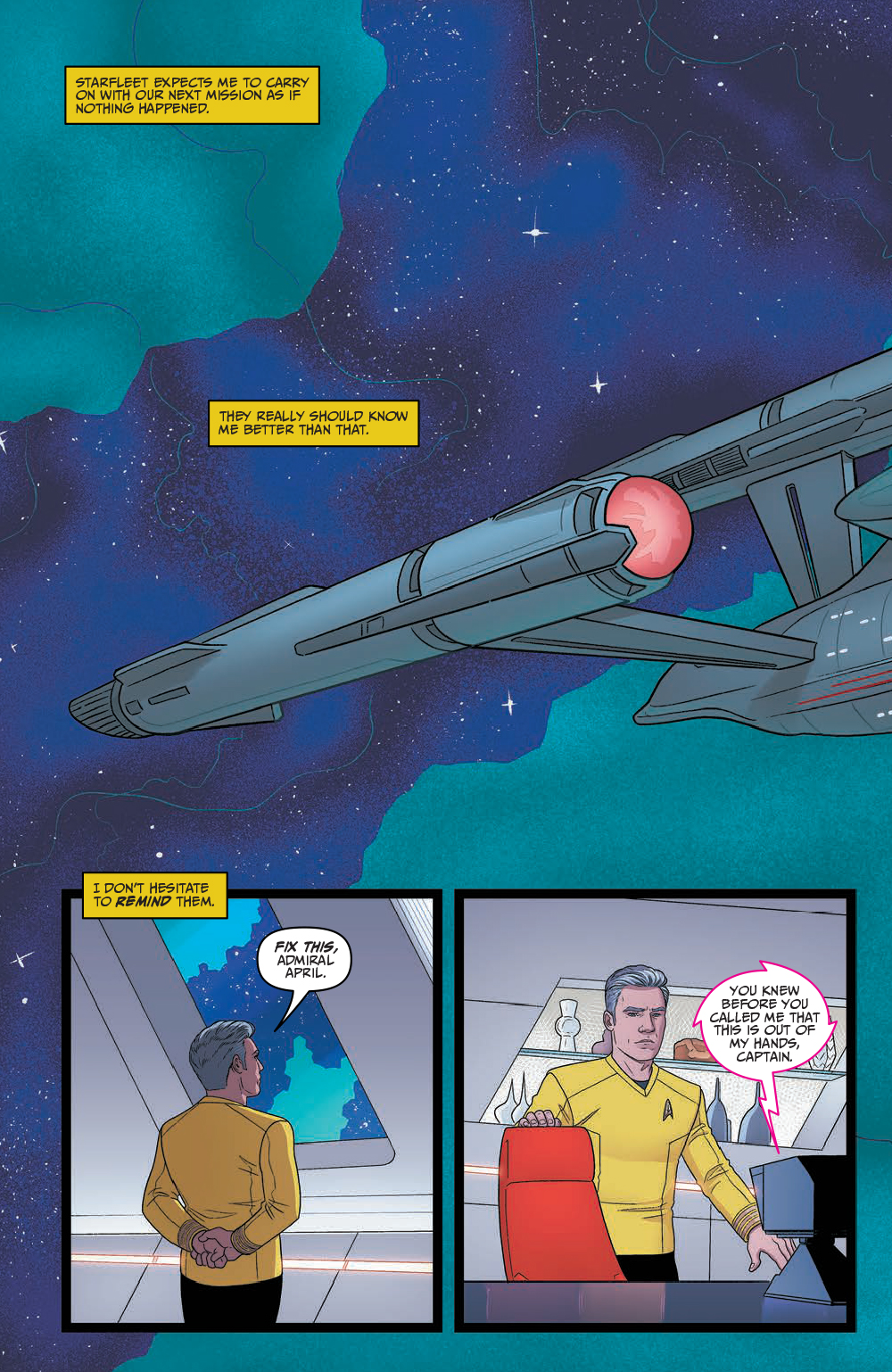 With Una accused of unlawful genetic modification by Starfleet, Captain Pike sets out in search of evidence that could prove his first officer’s innocence. From the mighty pens of Trek duo Kirsten Beyer and Mike Johnson with art by Megan Levens.