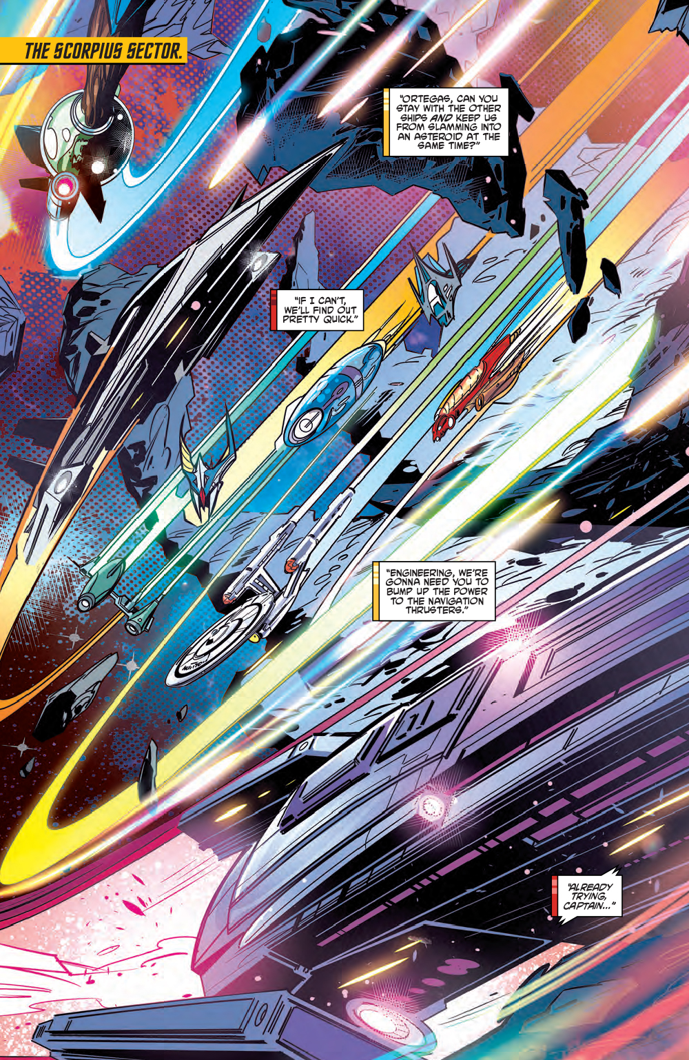 Let the race begin! After entering a crime lord’s starship competition to save an innocent pilot, the U.S.S. Enterprise jets through a gauntlet of dangerous environments in the unexplored Scorpius sector. But cosmic storms and sentient ship-eating asteroids aren’t the only obstacles the crew will have to survive!