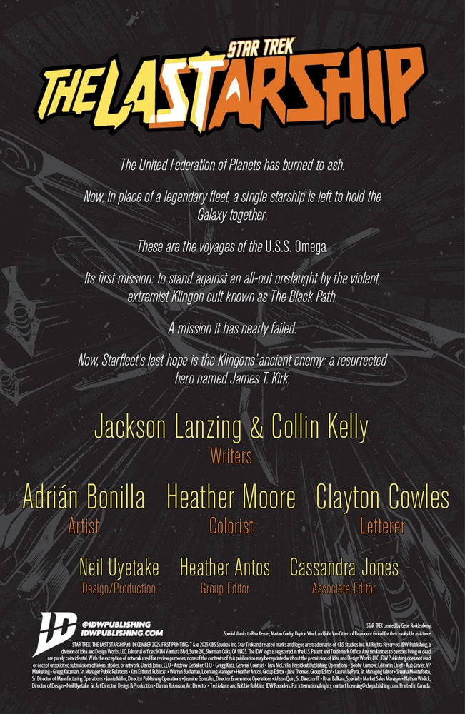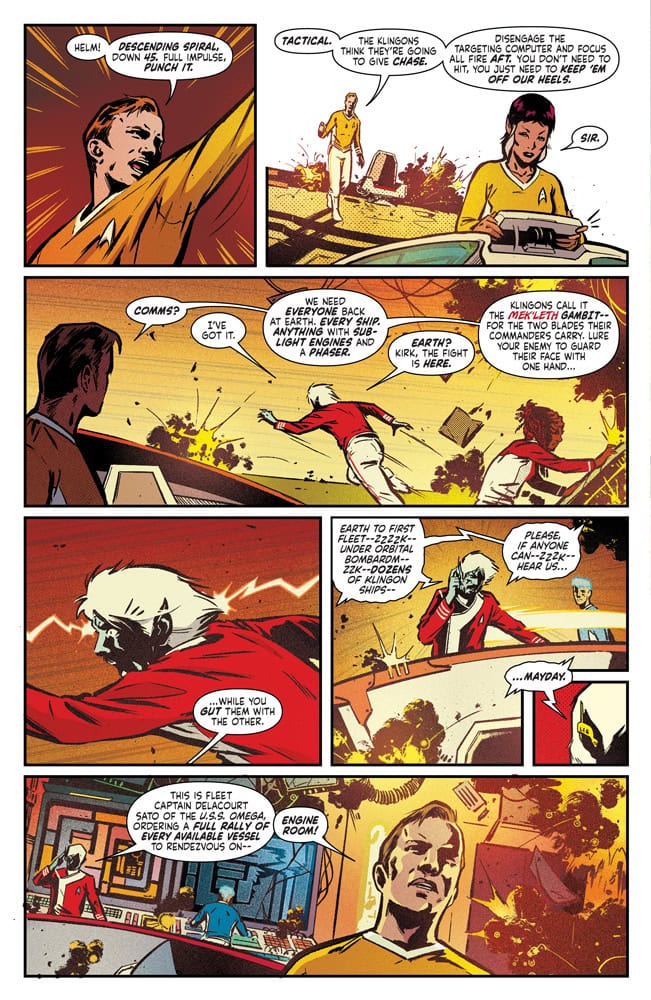 The U.S.S. Omega launches into battle! Its adversary? A chaotic Klingon cult whose bloodred path is focused purely on obliterating the remaining vestiges of Starfleet. What’s left of the Federation is falling apart by the moment. Captain Sato, who once dreamed of uniting the galaxy, is now living his worst nightmare. He was raised in a time of peace… but no progress comes without a fight. While the Klingons might be his enemies after centuries of peace, he has Kirk as his ally… and no one knows how to defeat a Klingon better than the Federation’s greatest hero.