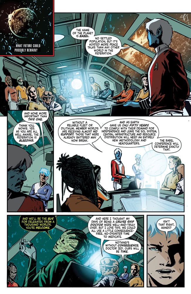 The U.S.S. Omega’s mission is clear: Gather the final delegates for the Babel Conference, the Federation’s last, fragile chance at unity. A future of peace still seems possible… on paper. But every time Wowie returns to Earth, the home they once loved slips further into despair.