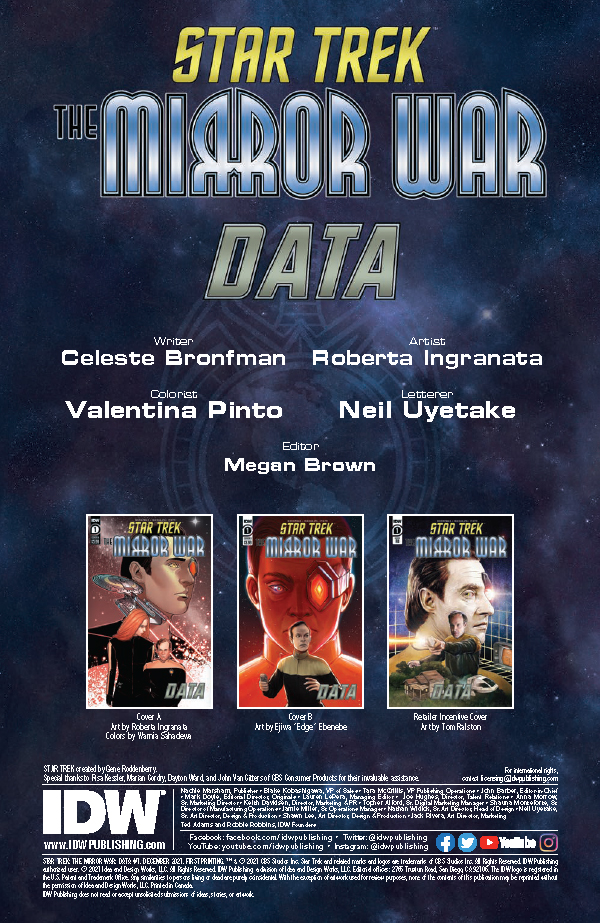 The spotlight turns to Data in this one-shot set in the Mirror Universe of The Next Generation! Expand upon the world of The Mirror War!