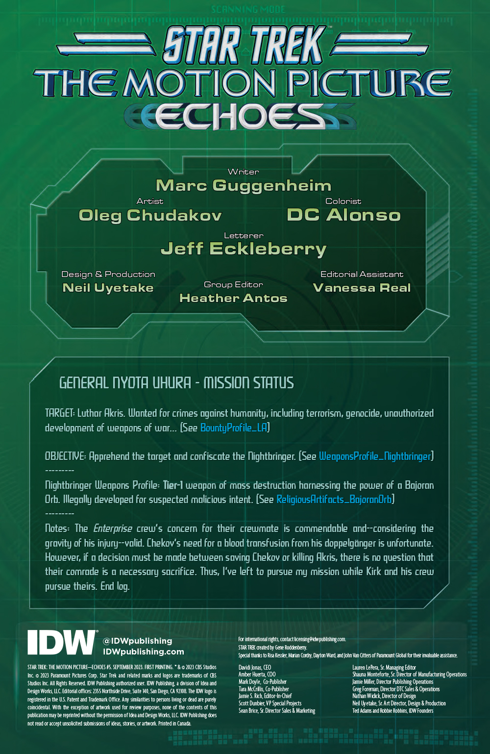 IDW Publishing releases the fifth and final issue of Star Trek: The Motion Picture – Echoes this coming Wednesday, and you can check out the official preview of the issue below…