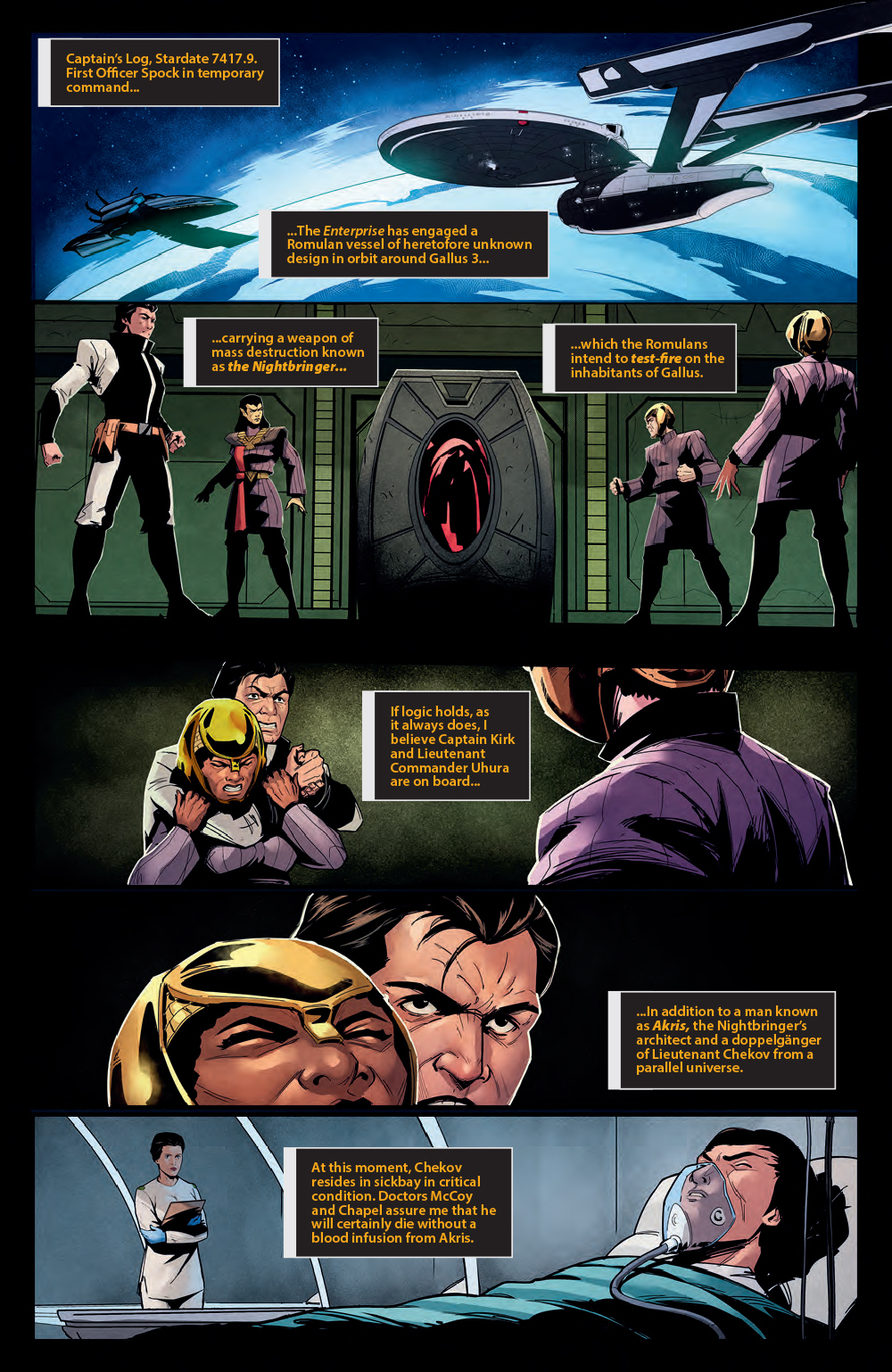 Peace hangs in the balance with Akris and the Romulans’ plans to test the devastating Nightbringer weapon on an innocent population and with the Enterprise crew’s actions treading the line of the Federation-Romulan peace treaty. Meanwhile, Nyota has gone rogue after finding the crew’s actions too passive for her liking. Can Nyota and Kirk set aside their differences to ensure a peaceful resolution and avoid sparking the next intergalactic war? Find out in the finale of Star Trek: The Motion Picture – Echoes!