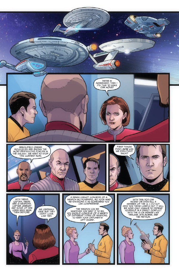 IDW releases the climactic sixth issue of its crossover series Star Trek: The Q Conflict this Wednesday, and you can take a look at a preview right here…