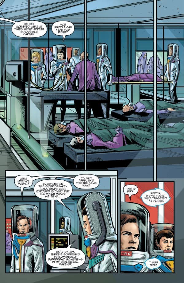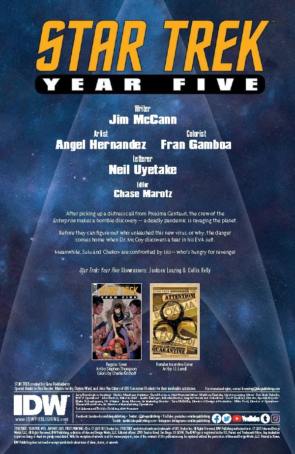 A pandemic raging across Alpha Centauri. A powerful enemy aboard the Enterprise. With death lurking around every corner, the crew will face down one of their greatest challenges yet in the shocking conclusion to this episode from Eisner-winning writer Jim McCann (Return of the Dapper Men) and superstar artist Angel Hernandez (Star Trek: Picard)!