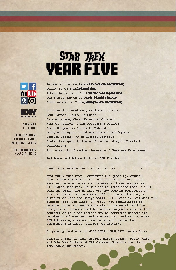 IDW Publishing explores the final year of the original five year mission by collecting the first six issues of its Star Trek: Year Five series this week in the trade paperback Odyssey’s End; check out a preview here…