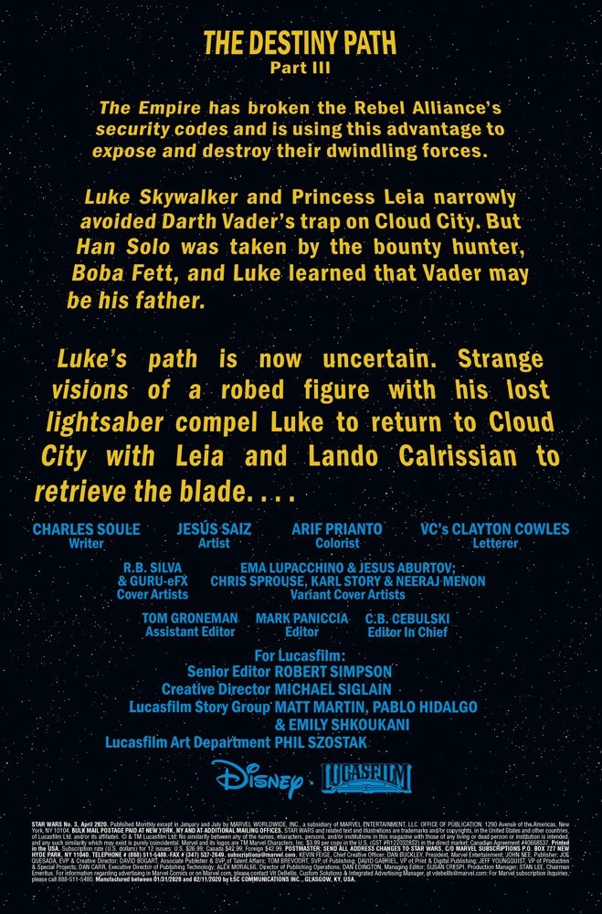 RETURN TO CLOUD CITY! The end of the war and the final defeat of the REBEL ALLIANCE are inevitable as the cunning IMPERIAL COMMANDER ZAHRA unleashes her fury against the splintered and scattered survivors. But where have the Rebellion’s greatest heroes gone when their cause needs them the most? LUKE SKYWALKER’S only hope at becoming a JEDI KNIGHT was lost during his battle with DARTH VADER…and so he, PRINCESS LEIA and LANDO CALRISSIAN must return to CLOUD CITY to find it! But Leia has her own covert mission to accomplish there…and Lando’s mysterious reason for returning could very well ruin their only chance at success!