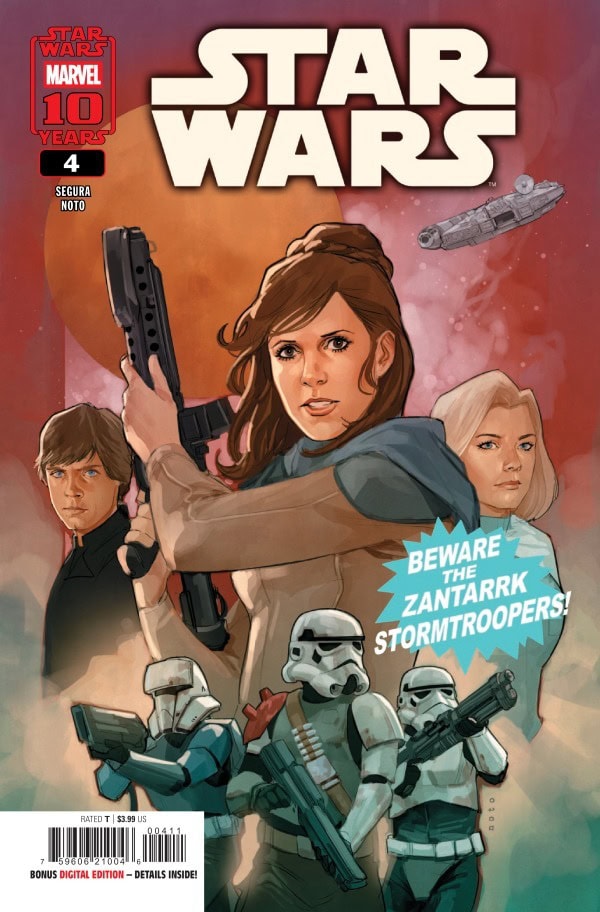 LEIA ORGANA — IN THE CLUTCHES OF THE ZANTARRK STORMTROOPERS! An assassin unmasked — and it’s not who you expect! The Millennium Falcon — cornered! And a message from the CLONE WARS ERA sends shock waves in the present!