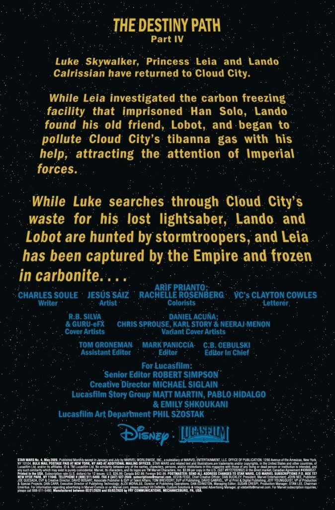 LUKE SKYWALKER, LANDO CALRISSIAN and LEIA ORGANA have returned to CLOUD CITY! They each left things on BESPIN they desperately need – a weapon, a friend, and crucial information. But the city is swarming with IMPERIALS, under occupation by an EMPIRE desperate to steal its resources. Things did not go well for the trio the last time they visited this place. This time… might be even worse.