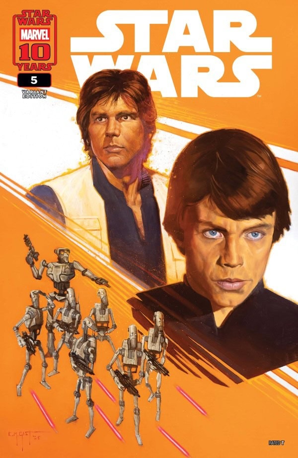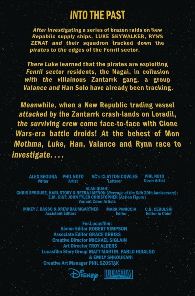 THE PAST RETURNS! As LUKE, RYNN, HAN and VALANCE race to find a group of stranded traders — they uncover a startling, and deadly, relic from the past — and have to face off against a horde of BATTLE DROIDS! LEIA and MON MOTHMA face an unexpected and powerful attack! Who is the new leader of the Nagai resistance? Cornered on a desolate planet, our heroes are left with one shocking option to survive!
