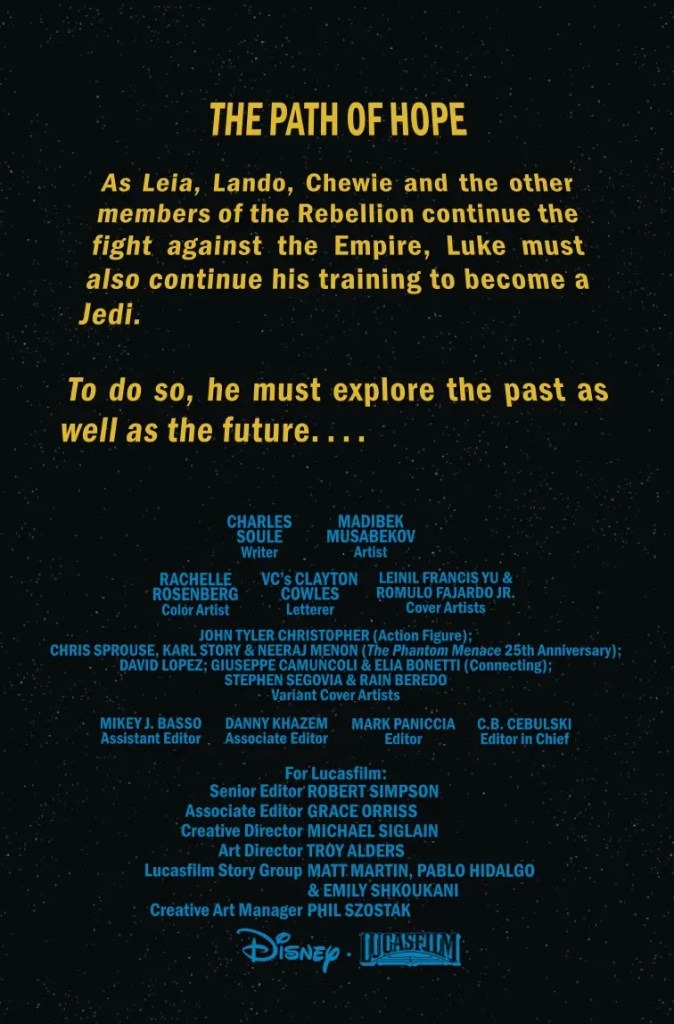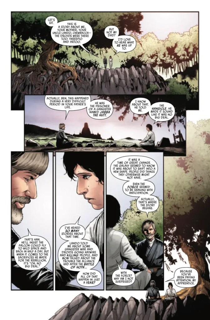GIANT-SIZED STAR WARS EPIC! A fifty-page extravaganza! JEDI MASTER LUKE SKYWALKER must teach his student BEN SOLO a powerful lesson about the true balance between LIGHT and DARK! He offers up a tale from the days of the REBEL ALLIANCE that touches on ALL ERAS OF STAR WARS HISTORY, and brings this epic run to a thrilling, incredible conclusion!