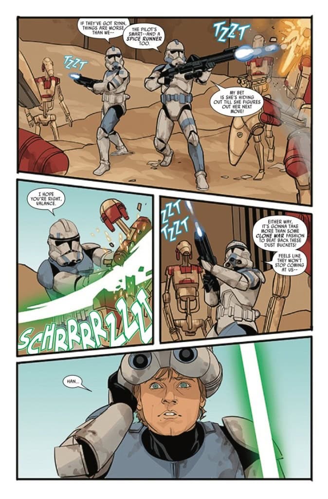 New Republic on the brink of war! LUKE, HAN and VALANCE face off against a swarm of Clone War-era threats! PRINCESS LEIA plays the only card she has left against the mounting threat! RYNN ZENAT discovers a clue that sheds light on the struggles of the mysterious NAGAI!