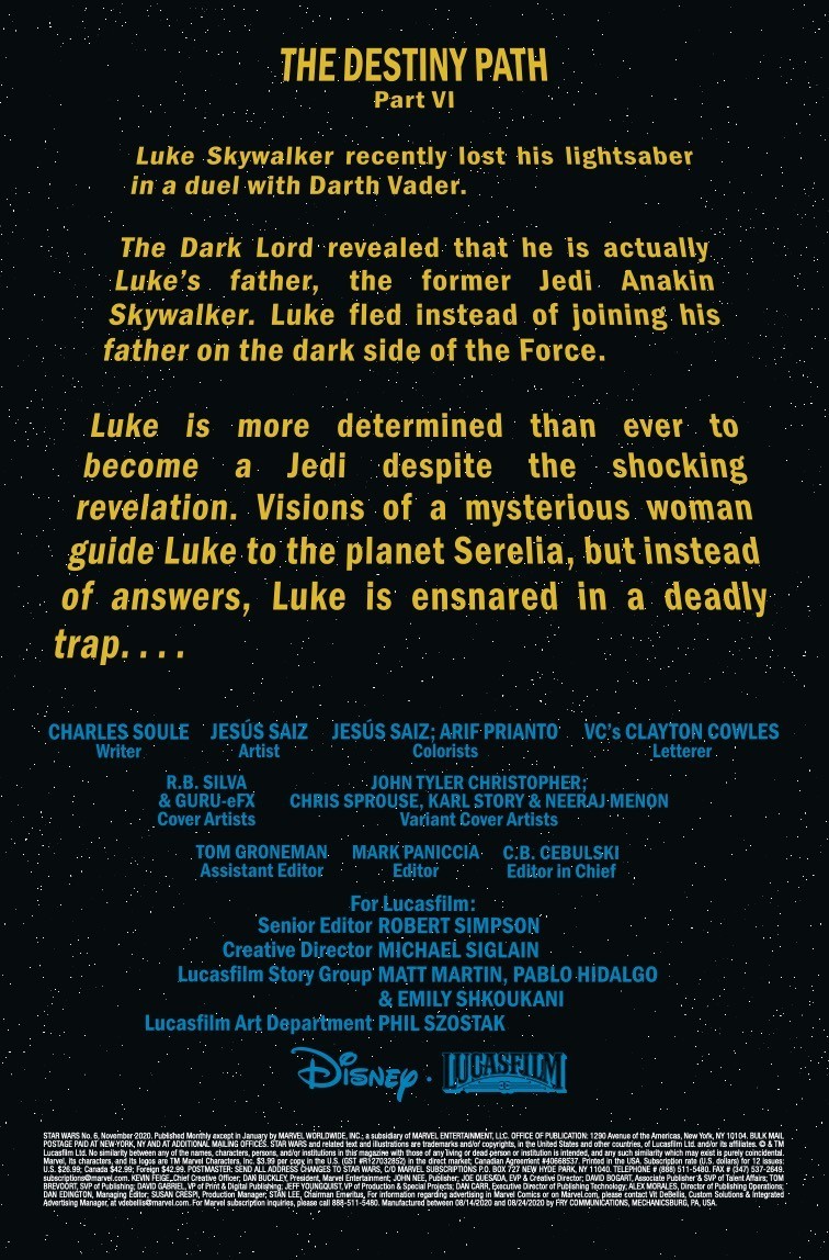THE PATH TO JEDI WISDOM…OR A DEADLY TRAP OF THE DARK SIDE? THE FORCE led LUKE SKYWALKER to someone who can provide him with great insight into the path to JEDI wisdom…But their meeting will change Skywalker FOREVER. Luke thought his duel against his father, Darth Vader, was the ultimate test. But Luke’s trials have only just begun. The galaxy needs Luke Skywalker. And a Jedi needs a weapon! Meanwhile, Vader continues his search for his long-lost son, and the REBEL ALLIANCE finds itself on the verge of a losing all hope.