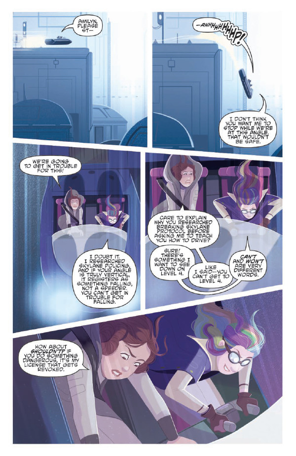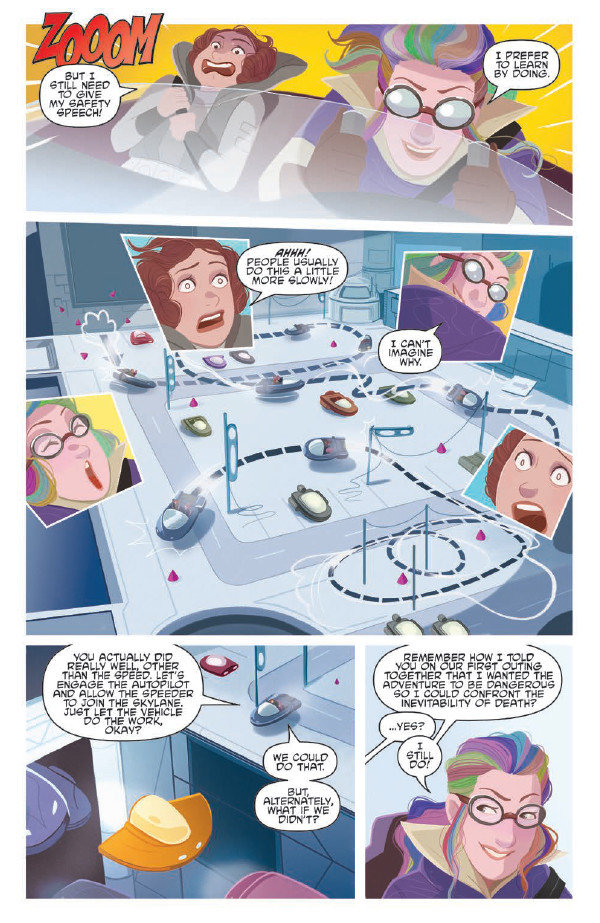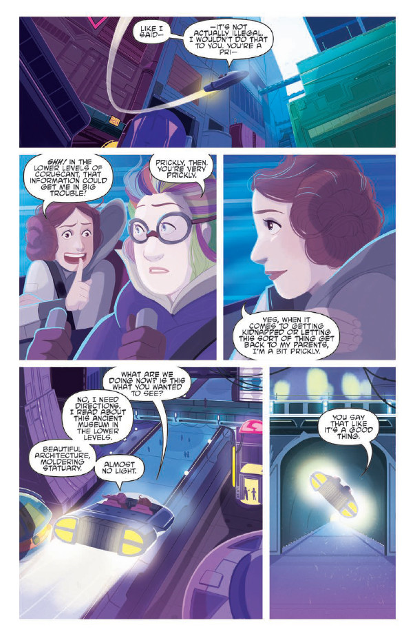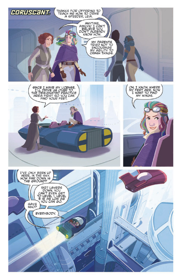 In this story set before A New Hope, Princess Leia Organa faces the most challenging task of her young life: teaching Amilyn Holdo how to drive a speeder! But both learn an important lesson after finding themselves in the dangerous lower levels of Coruscant.