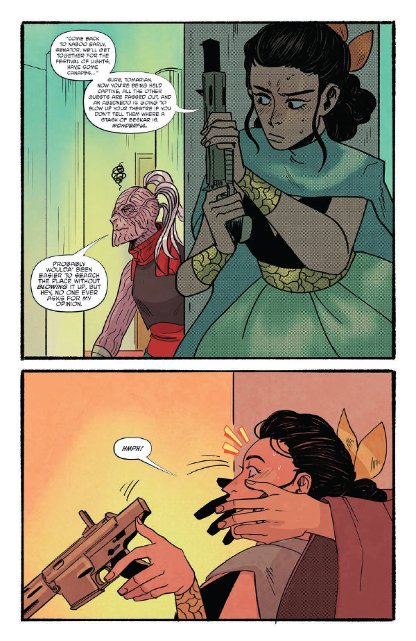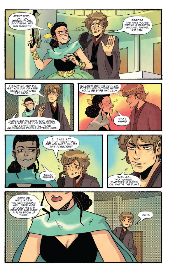 Padmé and Anakin have grand plans to have a romantic night together after a long separation. But before they get a chance to get together, Anakin is Jedi-napped by a group of outlaws! Now it’s up to Padmé to use all of her cunning to infiltrate the outlaw group and rescue him. Then, get a glimpse into the times of The High Republic with a story of the nefarious Nihil in “Tales of Villainy”!