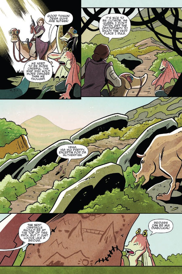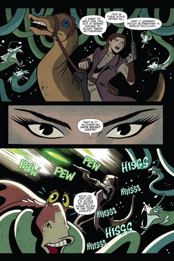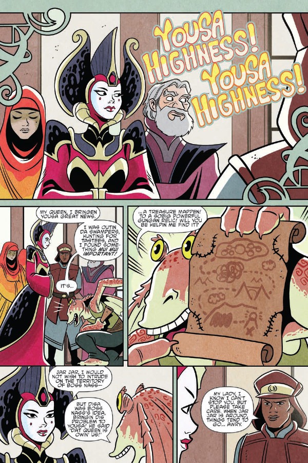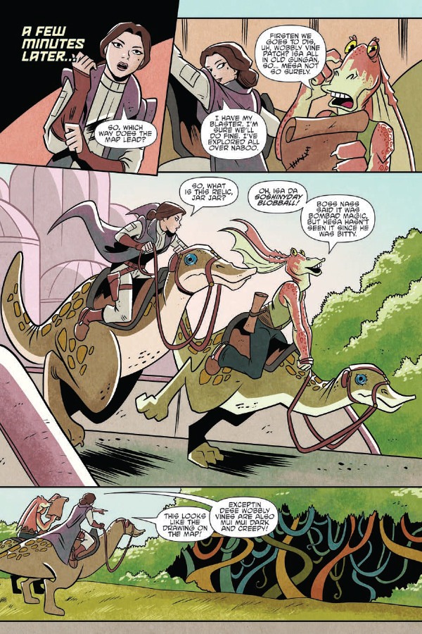 Padmé Amidala joins Jar Jar Binks on a quest to recover a legendary Gungan artifact, but this one is going to be very messy! Then, legendary General Obi-Wan Kenobi undertakes a daring operation for the Republic Army during the Clone Wars, guest starring Captain Rex! And, Jedi Knight Anakin Skywalker and Jedi Master Yoda embark on an urgent mission, where Anakin’s rebellious nature could spell trouble for the Republic.