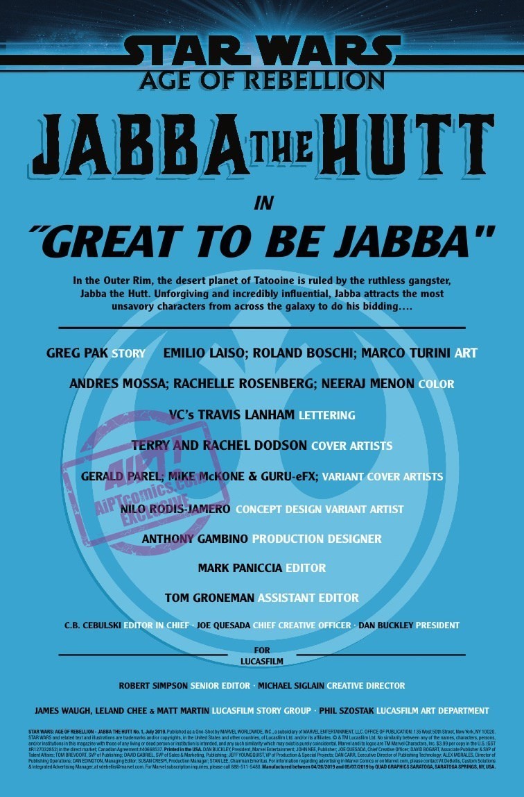 Comic Book Preview – Star Wars: Age of Rebellion – Jabba the Hutt #1