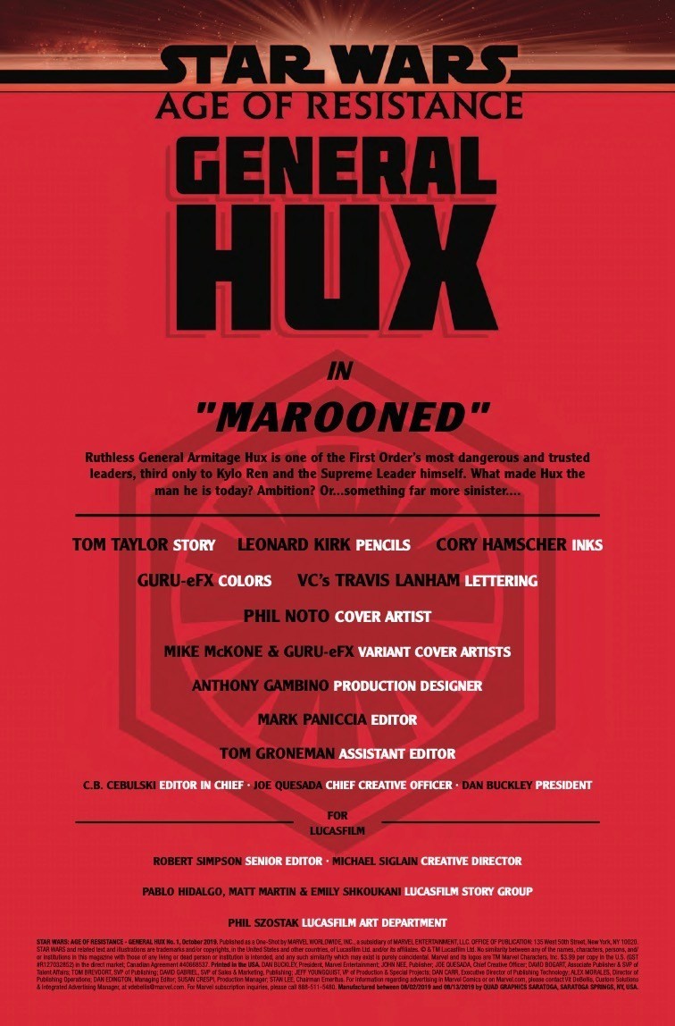 Star Wars: Age of Resistance: General Hux #1 is out on August 28th, priced $3.99.
