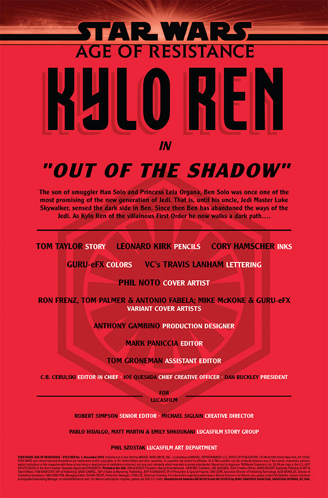 Star Wars: Age of Resistance – Kylo Ren #1 is out on September 25th, priced $3.99.