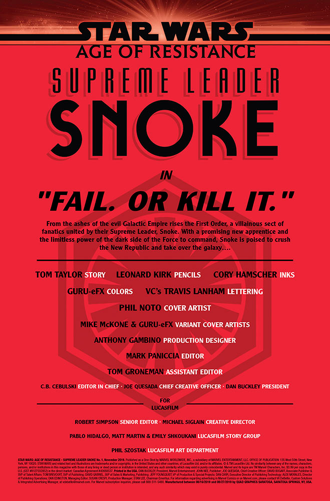 Star Wars – Age of Resistance: Supreme Leader Snoke #1 is out on September 11th, priced $3.99.