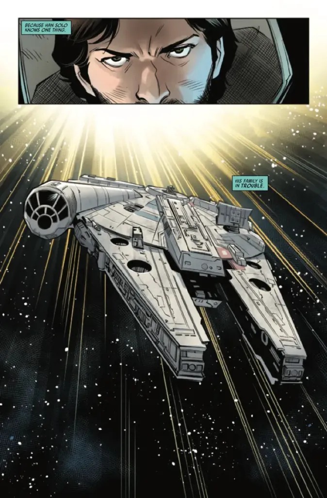 A BRAZEN ASSASSINATION ATTEMPT LEAVES THE HEROES REELING — AS A DARKER TRUTH IS UNCOVERED! LUKE, LEIA and HAN are reunited — but under dire circumstances! What’s left of the Empire must react to a new threat — on the eve of the BATTLE OF JAKKU! A traitor revealed! The heroes are faced with an ominous new threat careening toward them — with JAKKU as the target!