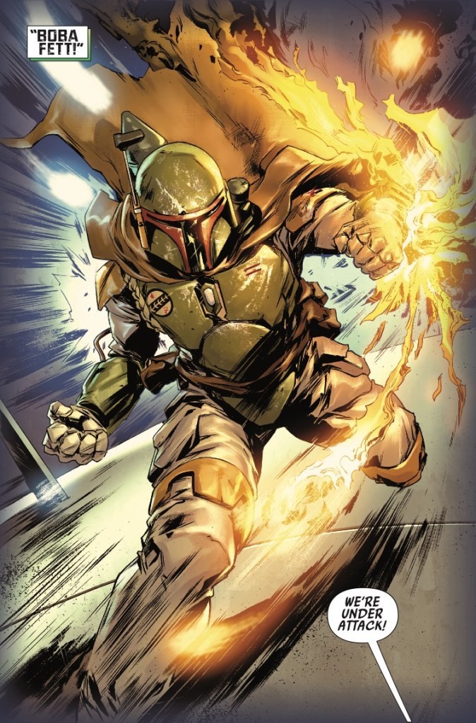 Years ago, VALANCE and fellow bounty hunters BOSSK and BOBA FETT took on a mission that went sideways in a bad way after Valance’s mentor, NAKANO LASH, violently betrayed them. Valance’s team barely escaped with their lives. He never thought he’d face his old mentor ever again…until Lash finally resurfaces under mysterious circumstances. Every bounty hunter in the galaxy wants a piece and Valance is hell-bent on getting to the prize first. He has score to settle-but so does Boba Fett! ETHAN SACKS (OLD MAN HAWKEYE and GALAXY’S EDGE) and PAOLO VILLANELLI (VADER: DARK VISIONS and JEDI FALLEN ORDER – DARK TEMPLE) are teaming up to bring you the bounty hunter adventure you’ve been waiting for this March!