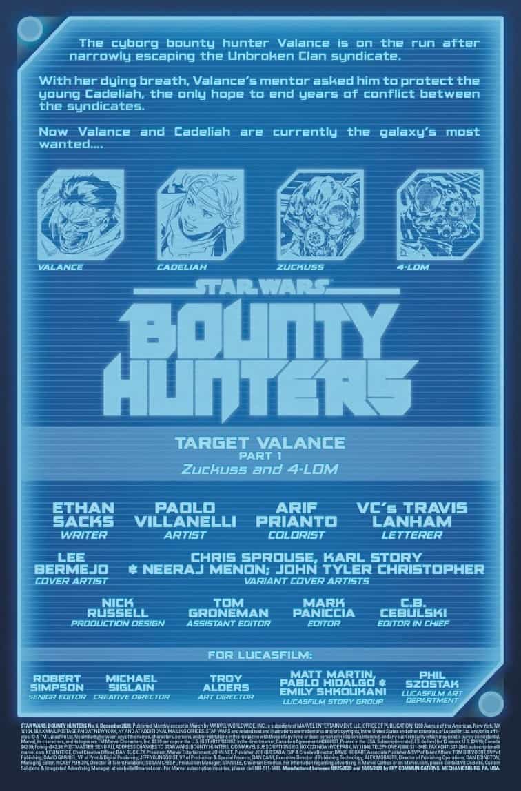 TWO AGAINST ONE! With precious cargo and a price on his head, VALANCE must go to the only person in the galaxy he can trust. But the UNBROKEN CLAN has sent a deadly and unique pair of bounty hunters after him! No one in the galaxy can escape the combined cunning of 4-LOM and ZUCKUSS!!!